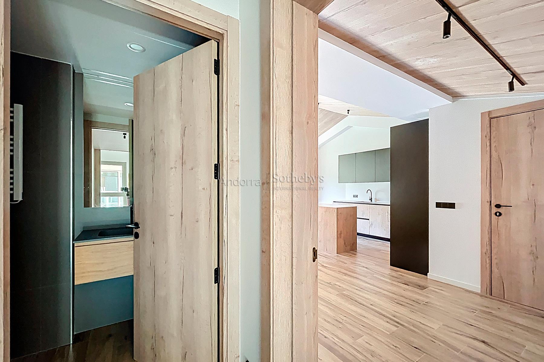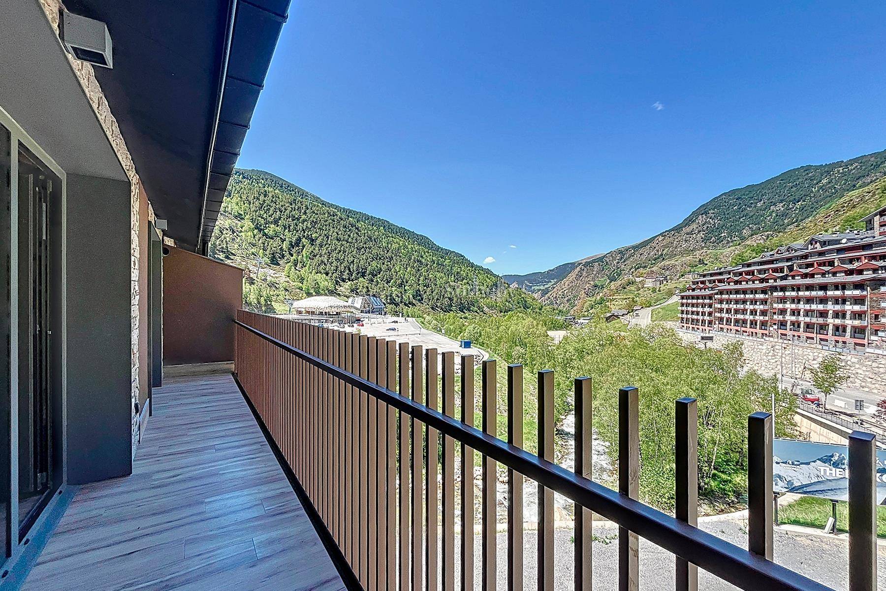 Descubre esta magnífica obra nueva ubicada en El Tarter. Con una superficie de 99,40 m2, esta propiedad ofrece un espacio moderno y espacioso para disfrutarlo al máximo. Con dos amplias habitaciones dobles, incluyendo una suite impresionante, este hogar es perfecto para aquellos que buscan comodidad y estilo. La cocina, integrada en el salón comedor, crea un ambiente acogedor y funcional. Desde aquí podrás acceder a una encantadora terraza de 8,95 m2 con vistas panorámicas al Valle de Canillo, y sol de tarde. Imagina disfrutar de las comidas exteriores o relajarte mientras contemplas las impresionantes vistas y las puestas de sol. El edificio cuenta con un box privado para dos coches, lo que brinda una comodidad adicional y permite tener tus vehículos protegidos del frío y la nieve. Esta propiedad está equipada con características de alta calidad, como iluminación LED de bajo consumo, suelo radiante y una elegante chimenea eléctrica. Además, cuenta con domótica que te permite controlar y gestionar fácilmente los sistemas del hogar desde su teléfono inteligente. Los electrodomésticos de primera calidad le ofrecen una experiencia culinaria excepcional, mientras que los suelos radiantes, y de gres porcelánico añaden un toque cálido, de sofisticación y durabilidad. La comunidad dispone de un spa y una zona de relax comunitario, donde podrás disfrutar de piscinas y jacuzzis, creando un ambiente de bienestar y relajación. Además un patio central con zona verde completa este entorno, proporcionando un espacio tranquilo y natural. No pierdas la oportunidad de vivir en esta maravillosa propiedad en El Tarter.Características