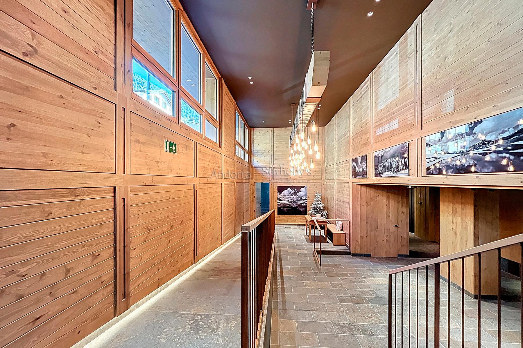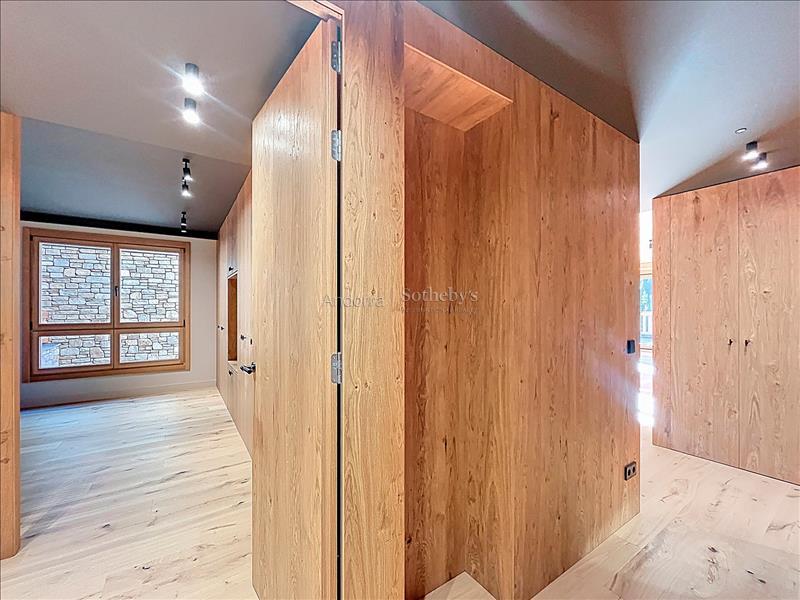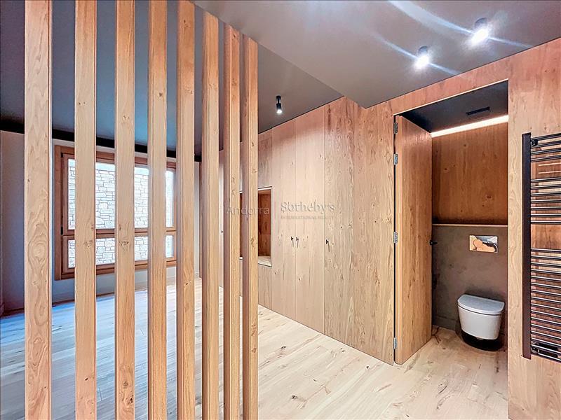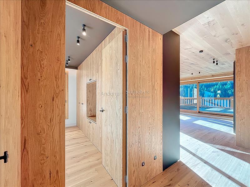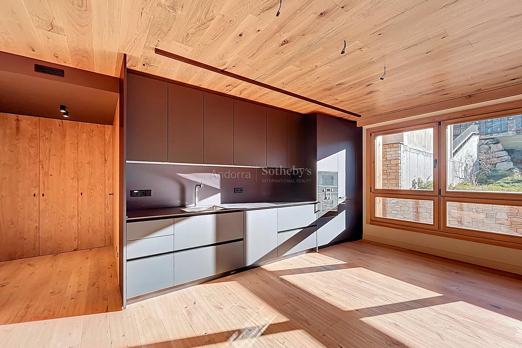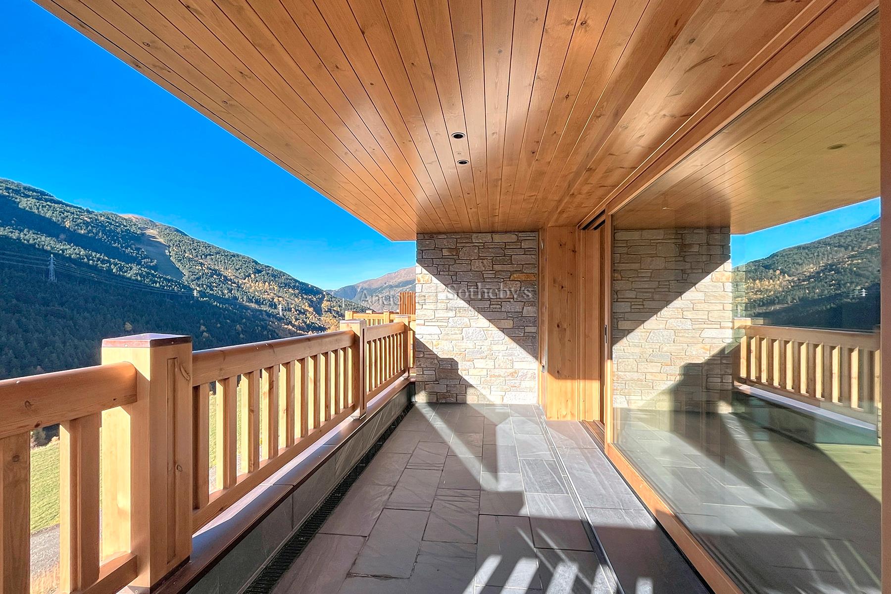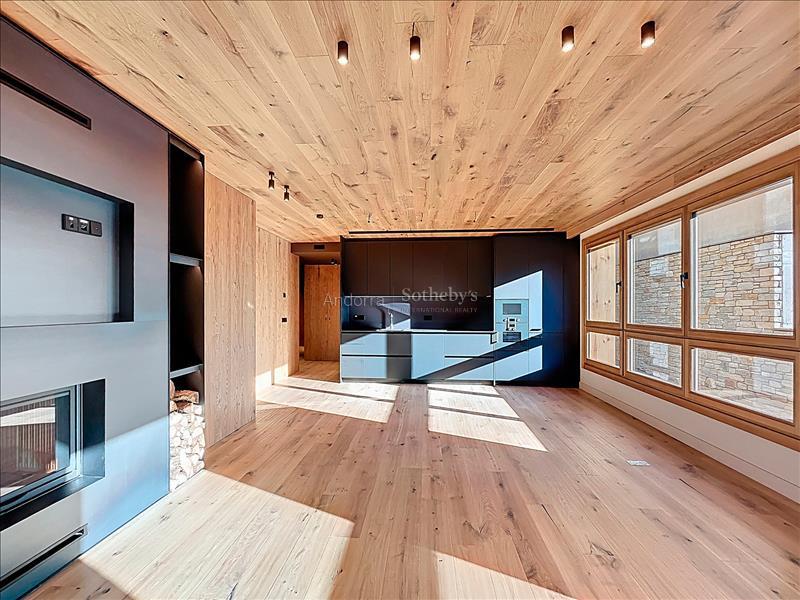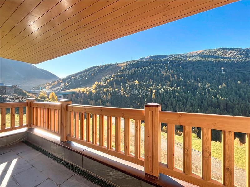 Welcome to a true luxury retreat in the heart of the majestic Pyrenees, just steps from the breathtaking ski slopes of the charming village of Soldeu. This exclusive apartment offers an unparalleled experience, where nature blends seamlessly with contemporary design, creating the perfect space for those seeking serenity and sophistication. With a meticulously designed area of 120 m², this property stands out for its structure that breathes nature, using native pine wood and local stone that harmoniously integrates into the surrounding landscape. The open-concept kitchen connects to a spacious living room, fostering memorable moments in a cozy and elegant environment. This apartment features two bedrooms, including a master suite and a double room, as well as two full bathrooms (one of them in the suite). Every corner has been thoughtfully conceived to ensure maximum comfort and functionality. The 9 m² terrace allows residents to enjoy spectacular views of the Grandvalira ski slopes and revel in the beauty of each season. Large, strategically oriented windows flood the space with natural light, immersing each room in the calm and majesty of the snowy peaks. Additionally, this magnificent apartment includes a private parking space for two vehicles, offering convenience and easy access at all times. Experience the magic of this unique space, where nature is not only observed but felt and celebrated. An exceptional place for those who wish to immerse themselves in the pure essence of mountain life in the heart of the Andorran peaks.Features