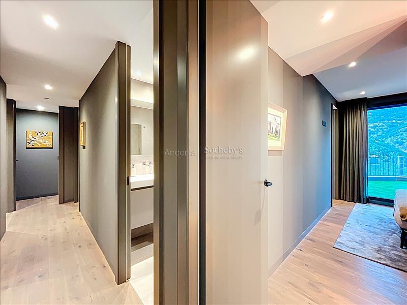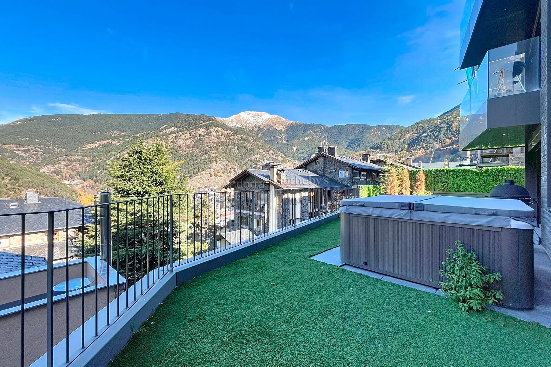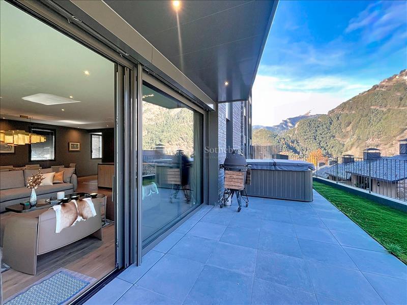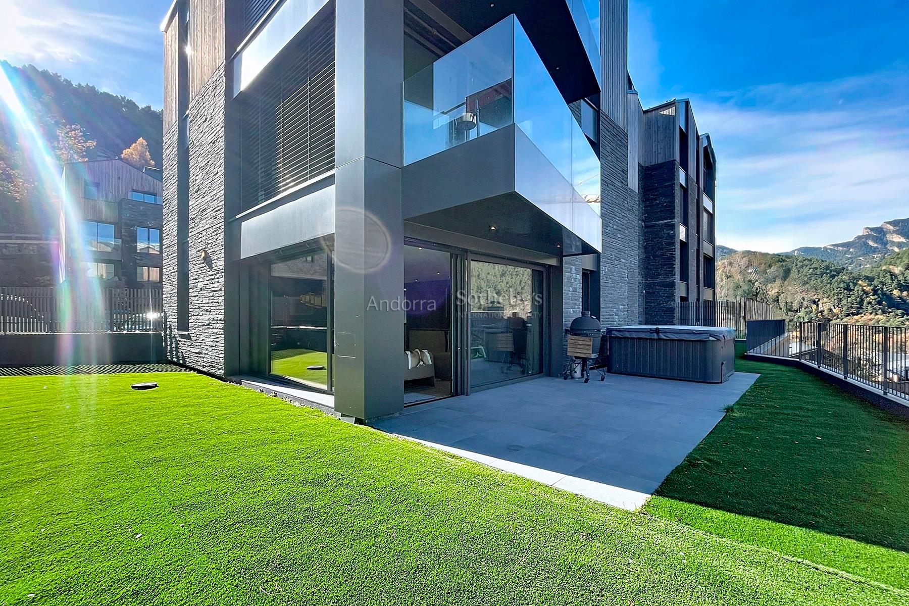 Located just five minutes on foot from the center of Ordino and close to schools, this elegant and spacious 328 m² ground floor offers an exclusive lifestyle in a dreamlike setting. It features 162.92 m² of interior space with a modern and functional design, and 165.83 m² of outdoor area, including a 24.35 m² terrace and a 134.01 m² garden. The living area, wide and bright, combines living room, dining room, and kitchen in a single space with direct outdoor access, promoting an open lifestyle connected to nature. It has three bedrooms, including a suite with a walk-in closet, as well as two contemporary-style full bathrooms and a guest toilet with an integrated laundry area. The 49.03 m² garage can accommodate three or four vehicles and provides storage space. High-quality materials, careful construction, and spectacular mountain views of Vall d’Ordino give this property a unique and exclusive character. The garden, equipped with a relaxing jacuzzi, is the perfect space to enjoy moments of tranquility, relaxation, and socializing in a private and beautiful environment.Features