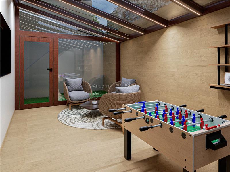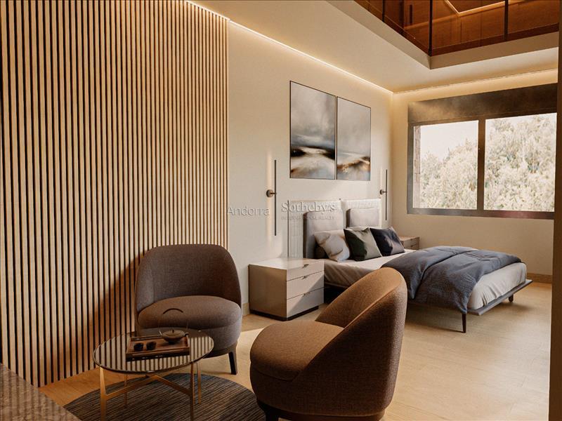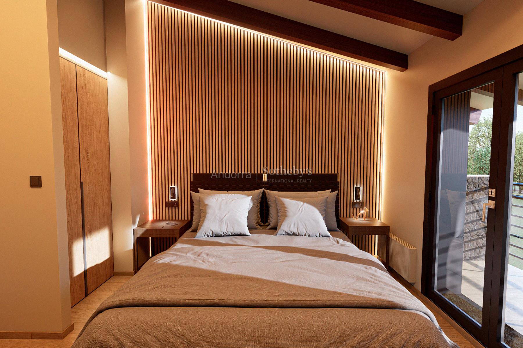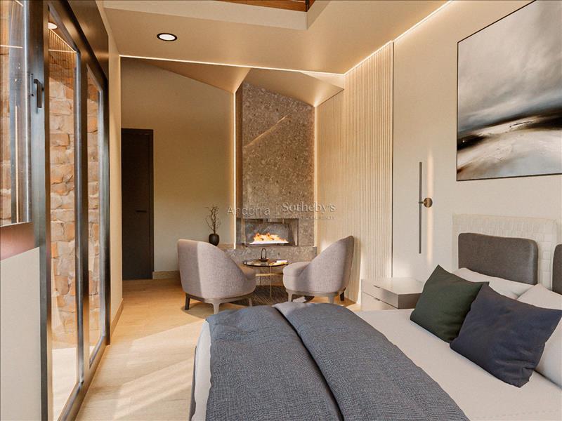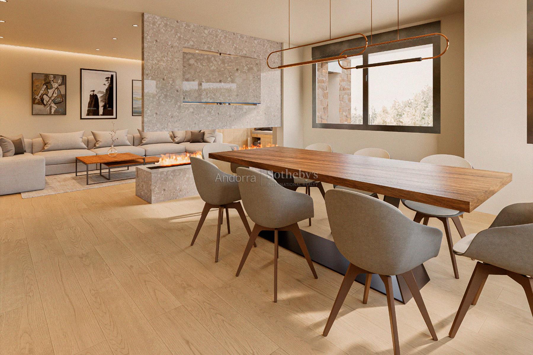 Nestled in one of the most privileged locations of Cortals d’Encamp, within the renowned and exclusive El Mollar residential development, this magnificent designer chalet perfectly combines luxury, comfort, and natural surroundings. With a built area of 300 m², the property offers a perfect balance between space, warmth, and functionality, featuring top-quality materials and a layout designed for year-round comfort. The residence opens onto a 120 m² terrace, from which you can enjoy breathtaking panoramic views of the valley and surrounding mountains — an ideal setting to relax and embrace the serenity of the Pyrenees. The garage, covering nearly 150 m², is a true added value. It provides space for more than six vehicles, features double-height ceilings, and includes the option to create an independent guest area fully adapted for residential use. Inside, the spaces are intelligently divided between day and night areas: Day area (68 m²): a bright, spacious living-dining room with an elegant fireplace and large triple-glazed windows ensuring state-of-the-art thermal and acoustic insulation. Night area (70 m²): designed to provide privacy and comfort, featuring generous bedrooms, functional mezzanines, and abundant storage. The property also includes a laundry area, multipurpose room, and is fully renovated and equipped, ready to move in with exceptional quality and detail. A truly outstanding home, ideal for those seeking to live surrounded by nature while enjoying design, exclusivity, and contemporary comfort, in one of Andorra’s most prestigious mountain settings.