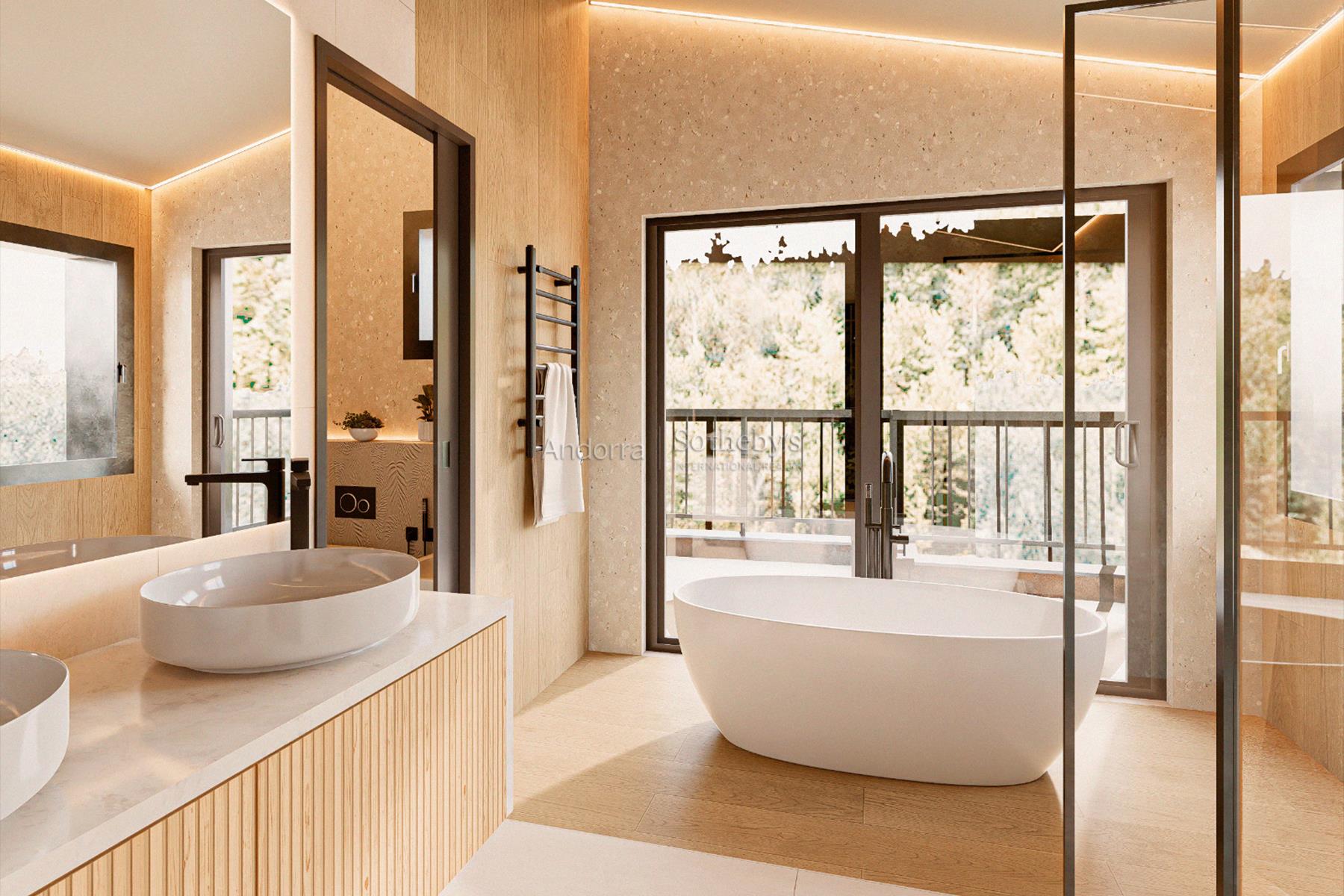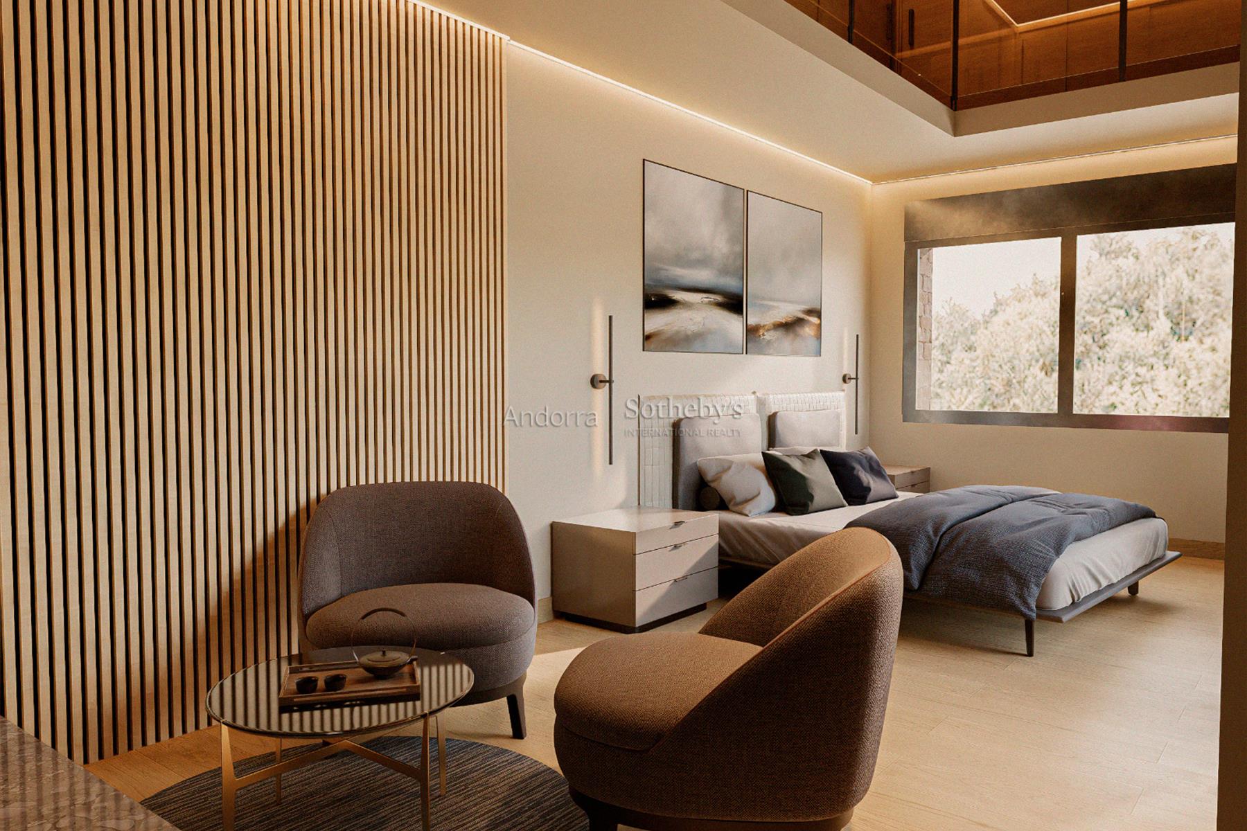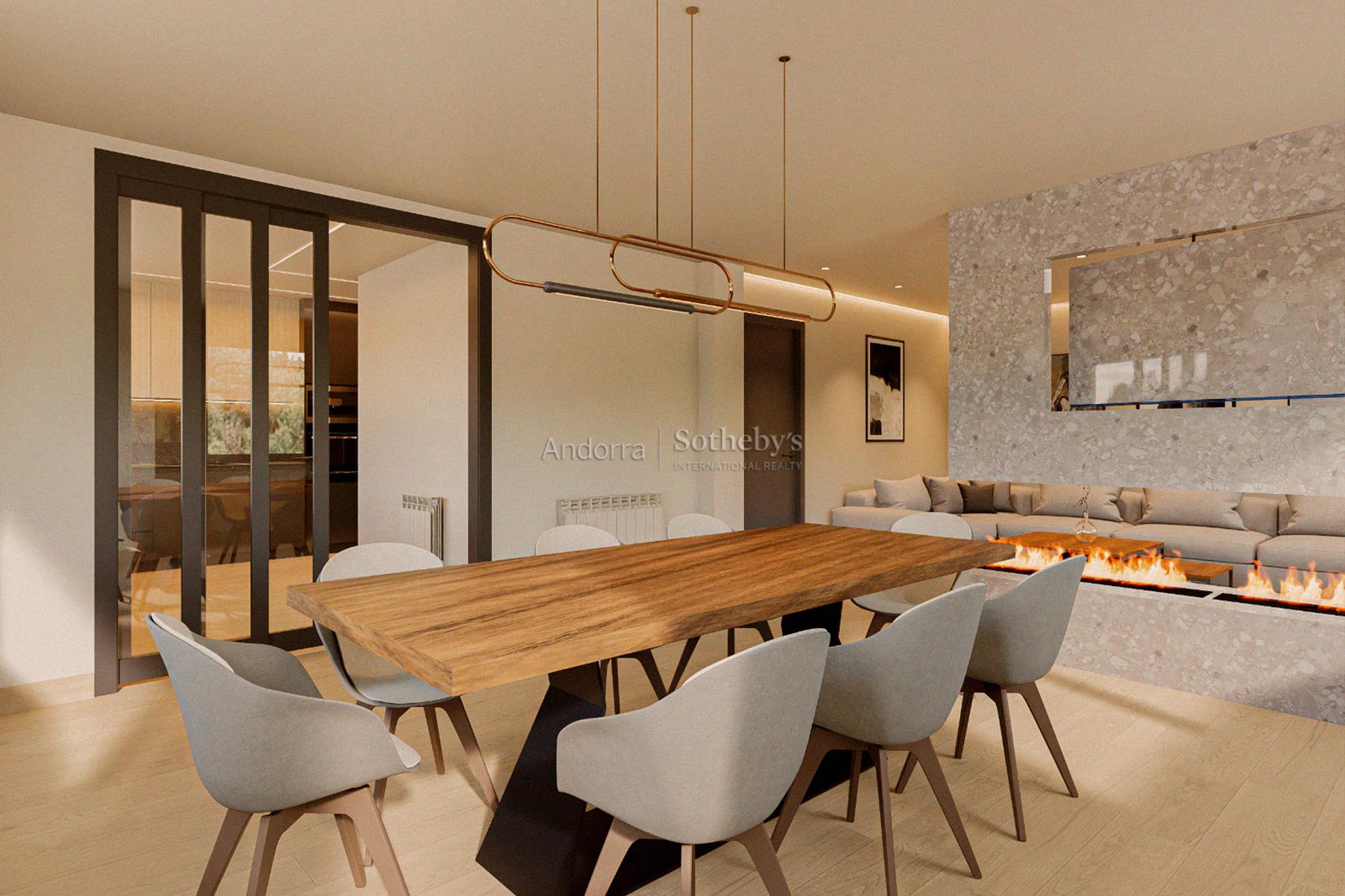 Nestled in one of the most privileged locations of Cortals d’Encamp, within the renowned and exclusive El Mollar residential development, this magnificent designer chalet perfectly combines luxury, comfort, and natural surroundings. With a built area of 300 m², the property offers a perfect balance between space, warmth, and functionality, featuring top-quality materials and a layout designed for year-round comfort. The residence opens onto a 120 m² terrace, from which you can enjoy breathtaking panoramic views of the valley and surrounding mountains — an ideal setting to relax and embrace the serenity of the Pyrenees. The garage, covering nearly 150 m², is a true added value. It provides space for more than six vehicles, features double-height ceilings, and includes the option to create an independent guest area fully adapted for residential use. Inside, the spaces are intelligently divided between day and night areas: Day area (68 m²): a bright, spacious living-dining room with an elegant fireplace and large triple-glazed windows ensuring state-of-the-art thermal and acoustic insulation. Night area (70 m²): designed to provide privacy and comfort, featuring generous bedrooms, functional mezzanines, and abundant storage. The property also includes a laundry area, multipurpose room, and is fully renovated and equipped, ready to move in with exceptional quality and detail. A truly outstanding home, ideal for those seeking to live surrounded by nature while enjoying design, exclusivity, and contemporary comfort, in one of Andorra’s most prestigious mountain settings.