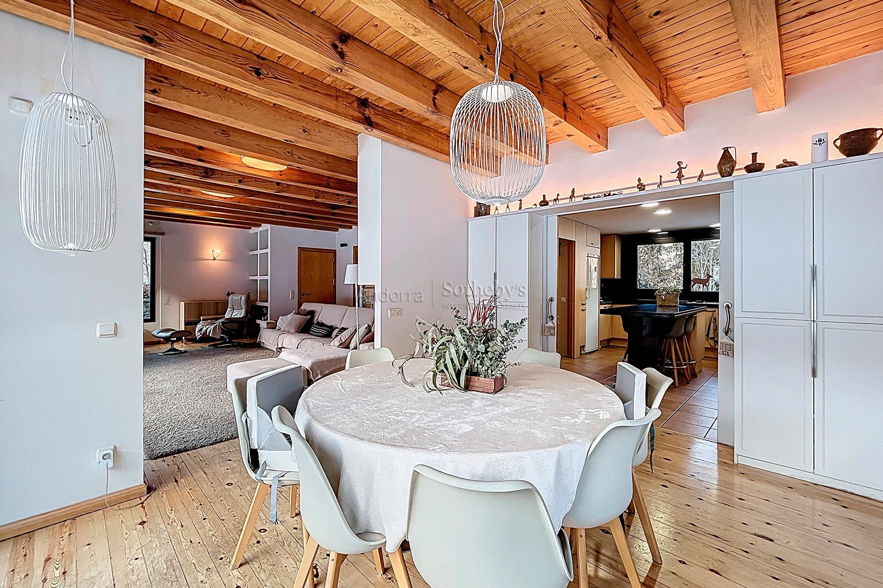 Sumérgete en la calidez y la tranquilidad de esta residencia rústica situada en Ordino. Con 417,66 m2 de espacio construido en una parcela de 701,05 m2, esta casa de 3 plantas ofrece un refugio acogedor en medio de un entorno sereno y natural. Al ingresar a la planta baja, accederás por la escalera a la planta 1 donde una espaciosa sala comedor con chimenea, que se abre a un jardín con césped natural, orientado al sur para disfrutar de la luz del sol y las vistas. La cocina totalmente equipada con despensa se conecta directamente al jardín, que cuenta con una zona de barbacoa y una toma de agua, ideal para reuniones al aire libre. También en esta planta, encontrarás un práctico aseo de cortesía. En la primera planta, las 4 habitaciones añaden una dimensión de confort y privacidad. Dos suites cuentan con baños privados y vestidores, mientras que las otras 2 habitaciones dobles comparten un baño completo con bañera. En esta planta también hay una práctica habitación para lavandería. Las ventanas panorámicas ofrecen vistas relajantes del entorno natural. El garaje a nivel de calle ofrece espacio para 4 vehículos, almacenamiento para bicicletas o motos, bodega, trastero y sala técnica para la calefacción. Con la posibilidad de instalar un ascensor, recibidor con armario closet y un conveniente sistema de drive para descargas desde el exterior, la residencia se distingue por su practicidad y comodidad. Disfruta de la vida en esta residencia rústica en Ordino, donde la serenidad del entorno y el cálido ambiente del hogar se fusionan para crear un espacio acogedor y familiar.Características