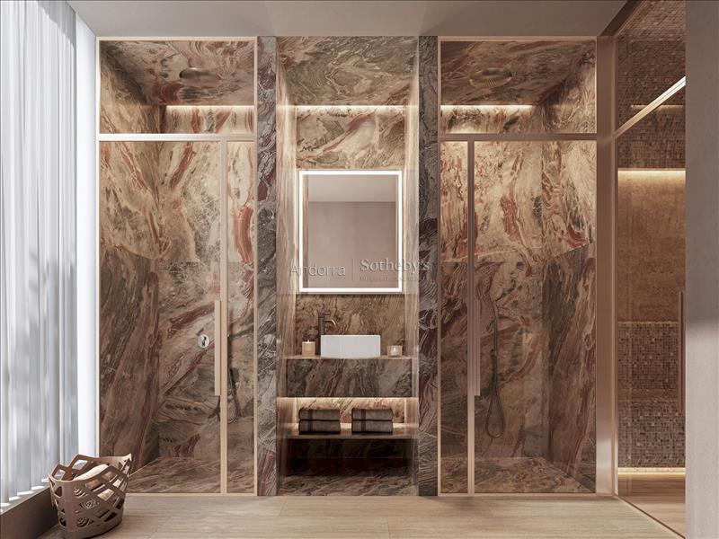 Descubra esta espetacular moradia geminada recém-construída localizada em Can Diumenge, Escaldes-Engordany. Esta residência de luxo tem uma área total de 1.001 m2, incluindo 368 m2 de terraços, jardins e alpendres pensados para desfrutar das belas vistas e do ar livre. Com um design arquitetónico elegante, a moradia distribui-se por cinco pisos, incluindo cave e semi-cave que oferecem espaços amplos e funcionais. No piso principal encontra-se um ambiente aberto que integra sala de estar, sala de jantar e cozinha, com acesso directo ao terraço e jardim. Este mesmo piso dispõe de uma instalação sanitária, um vestiário e uma prática lavandaria. Os pisos dedicados ao descanso albergam três quartos em suite, um dos quais com acesso ao exterior, situados no primeiro andar. No segundo piso encontra-se uma majestosa suite principal com closet, casa de banho e terraço privado que proporciona um espaço intimista e confortável. A cave é um verdadeiro oásis de relaxamento e bem-estar, com uma zona de Spa que inclui hammam, sauna seca, sala de yoga, ginásio, piscina e jacuzzi. Temos também um camarim com duche e WC para o máximo conforto. No piso -2 da cave existe uma ampla garagem com capacidade para até seis viaturas, uma arrecadação, um vestiário adicional, a sala técnica e cómodos acessos à casa. Com conclusão prevista para o terceiro trimestre de 2028, esta é uma oportunidade única para desfrutar de um atalho para uma vida de luxo num ambiente tranquilo e privilegiado. Não perca esta oportunidade de adquirir a sua nova casa em Can Diumenge.Características