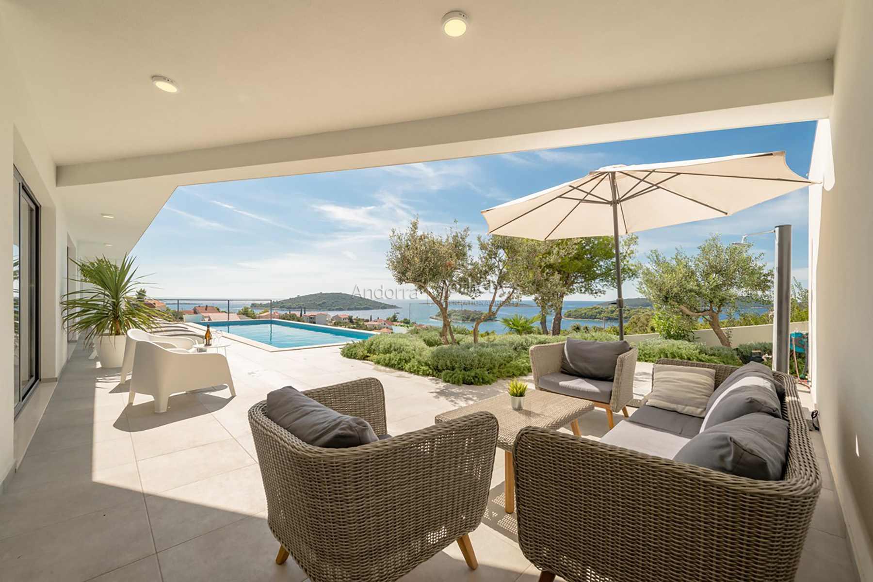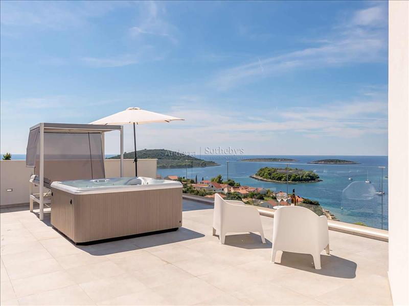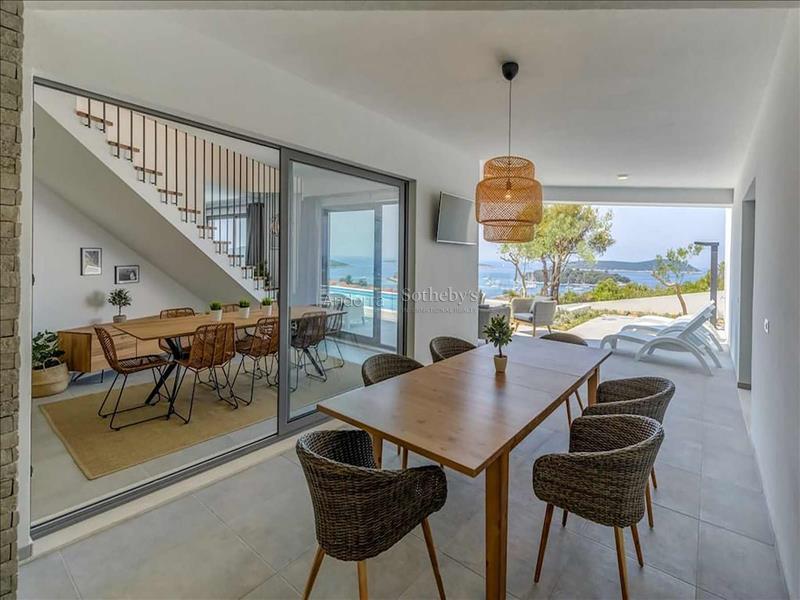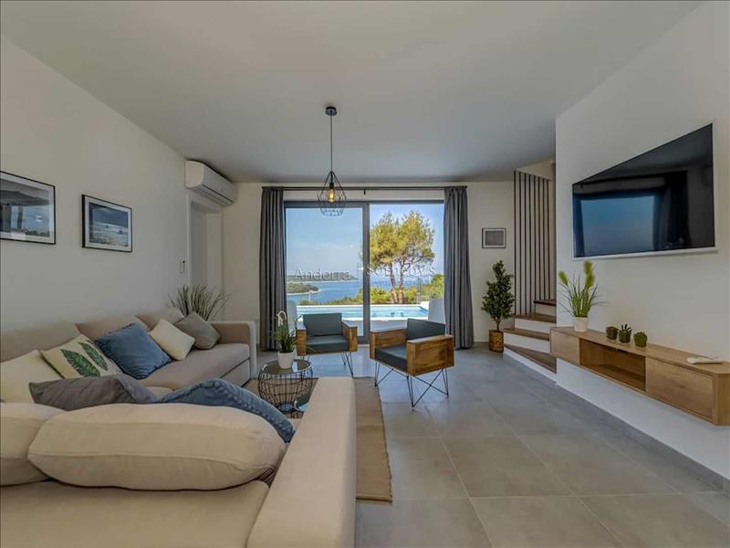 Vila moderna de recent construcció amb espectaculars vistes a la mar i a les illes situada a l'illa de Solta, que està a només 9 milles nàutiques de la ciutat més gran de Dalmàcia, Split. La propietat capta l'atenció amb el seu exterior contemporani adornat amb línies netes i grans superfícies de vidre que obren l'espai interior cap a l'exterior i l'entorn natural verge. Villa Amalia és una propietat de luxe situada en un recinte de 800 m2 amb una superfície habitable total de 268 metres quadrats. A causa del seu estil modern, la vila ofereix la màxima utilització i funcionalitat de l'espai i ofereix la màxima comoditat durant tot l'any. La vila completament moblada té quatre habitacions amb bany privat, una àmplia sala d'estar, un bany, una cuina, un menjador, un celler, un gimnàs amb sauna, dos trasters, un gran soterrani, una sala de màquines, una cuina d'estiu a l'aire lliure amb graella, així com una àrea de menjador coberta a l'aire lliure i una terrassa oberta de 70 m2 amb una banyera d'hidromassatge per memorables reunions d'estiu a l'aire lliure. També disposa d'una piscina climatitzada (11 x 3,5 metres) i àmplies zones per prendre el sol amb vistes a la mar. Totes les habitacions tenen aire condicionat i estan totalment equipades amb equipaments de primera categoria. La vila està envoltada per un jardí de romaní i espígol amb arbres fruiters i palmeres i té estacionament privat amb tanca elèctrica. Les meravelloses vistes a la mar i a l'paisatge mediterrani proporcionen un ambient íntim i acollidor que complementa de manera ideal el disseny interior elegant i modern de la vila. La vila es troba molt a prop de el poble i de l'guardonat port de Martinis Marchi amb nombrosos restaurants, bars i botigues.Característiques