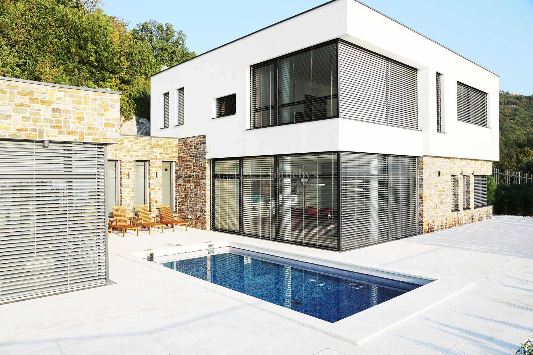 Villa Futura està situada a Opatija, amb fantàstiques vistes a la ciutat i la badia Kvarner. La vila té una superfície habitable de 244 m2 i una parcel·la de 1390 m2. La propietat està totalment moblada i equipada. Consisteix en dues plantes, dues places de pàrquing, un entorn cuidat i una piscina amb vista a la mar. La planta baixa de la vila disposa d'una cuina totalment equipada i un saló-menjador amb llar de foc. La planta superior disposa de quatre habitacions amb banys. Villa Futura està equipada amb les últimes tecnologies, com són el sistema de videovigilància, calefacció central i aire condicionat. Hi ha la possibilitat de comprar la vila sense mobles. Villa Futura combina la tradició amb la construcció moderna, envoltada d'un jardí d'estil mediterrani. Va ser construïda en 2016. La vila està situada a 3 minuts amb cotxe de centre de la ciutat i a només 50km de l'aeroport de Rijeka.Característiques