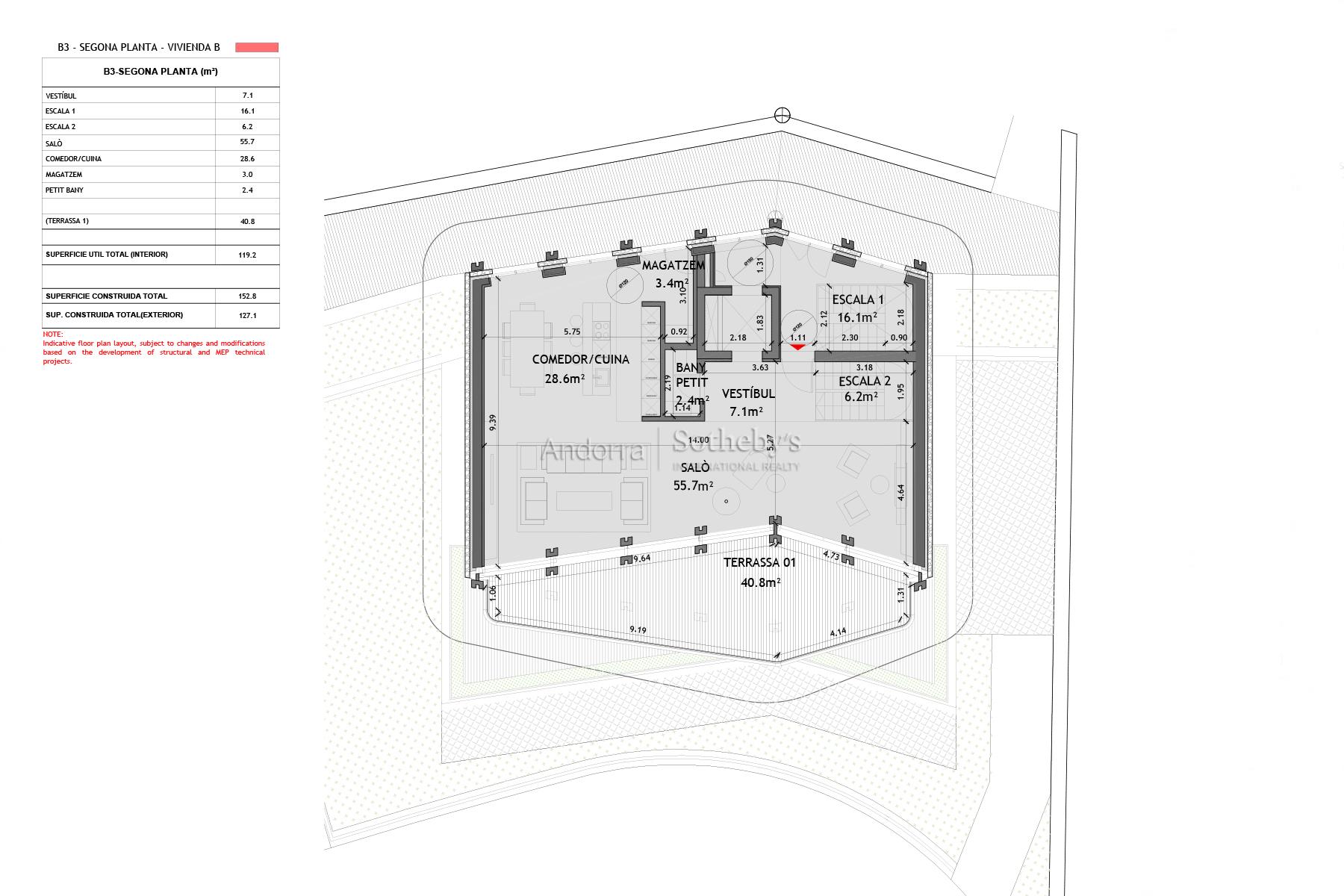Dúplex exclusivo con altillo en venta en el encantador pueblo de Ordino, primer destino del Principado de Andorra designado como Reserva de la Biosfera. Esta sensacional propiedad forma parte de una promoción de nueva construcción que destaca por su privilegiada ubicación así como por su diseño lujoso, ideado por el prestigioso estudio de arquitectura Rafael De la-Hoz Arquitectes. Se trata de un inmueble de nueva construcción de aproximadamente 362 m² construidos, que incluye dos terrazas orientadas de manera óptima para aportar la máxima exposición posible a la luz natural, mientras se disfrutan de las magníficas vistas de Ordino y sus valles. En la primera planta se encuentra la zona de descanso, con tres habitaciones en suite con baño completo, y la suite principal de la propiedad, con vestidor y baño completo. Todas las habitaciones tienen salida a la terraza. La segunda planta está distribuida en una gran cocina con isla central, equipada con las últimas tecnologías y abierta a un acogedor comedor, con chimenea y acceso a la terraza. En esta zona también hay un salón y una biblioteca, ambos espacios con salida a la terraza, un aseo y una zona de lavadora. En la última planta, bajo el tejado, se ubica un práctico despacho. La propiedad dispone de un garaje para 3 coches. Los acabados son elegantes y de la más alta calidad, y el diseño de la propiedad combina elementos modernos, como los grandes ventanales, con la arquitectura clásica andorrana en piedra y madera para integrarse de la mejor manera en el entorno y no perder la esencia del país.Características