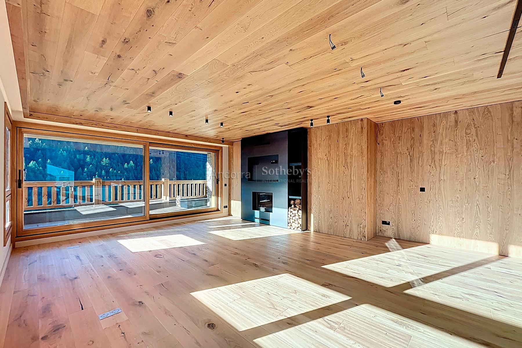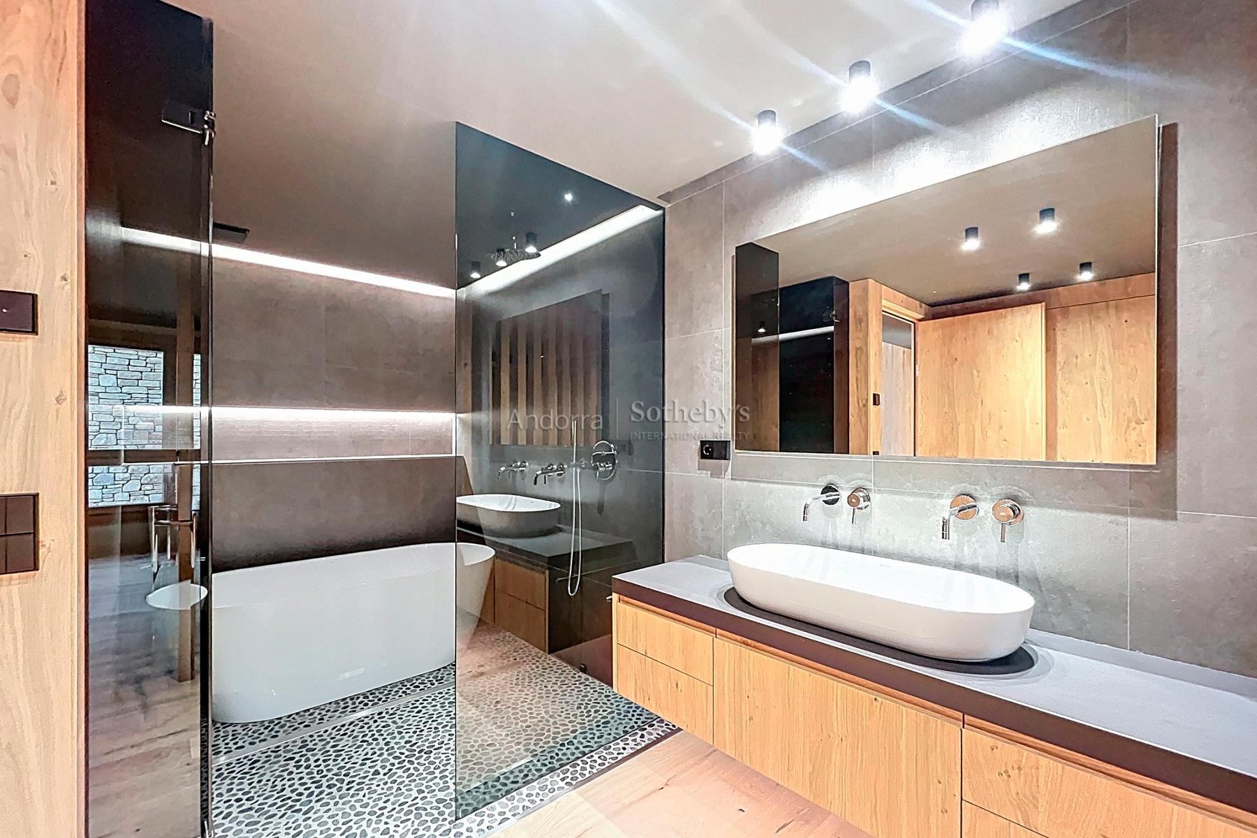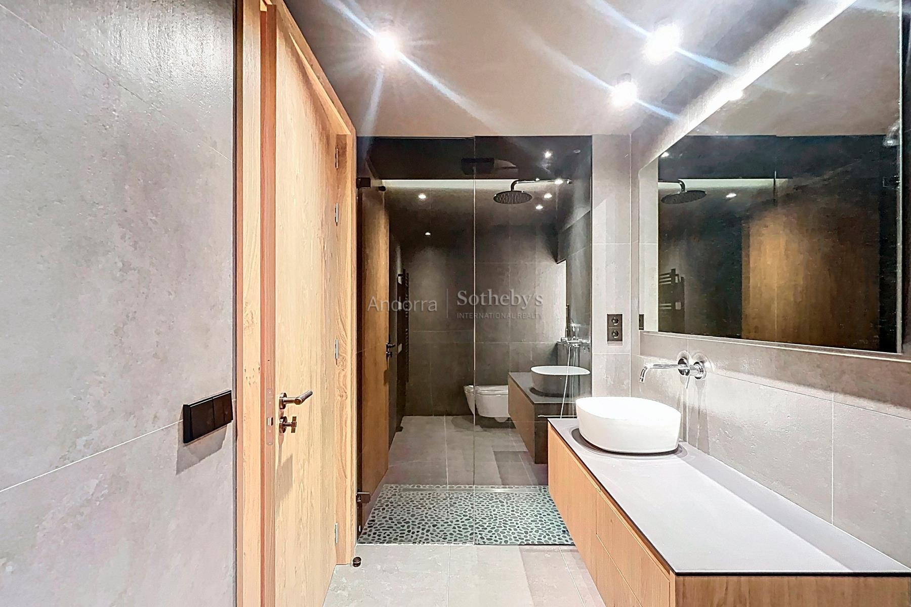 Welcome to a true luxury retreat in the heart of the majestic Pyrenees, just steps from the breathtaking ski slopes of the charming village of Soldeu. This exclusive apartment offers an unparalleled experience, where nature blends seamlessly with contemporary design, creating the perfect space for those seeking serenity and sophistication. With a meticulously designed area of 120 m², this property stands out for its structure that breathes nature, using native pine wood and local stone that harmoniously integrates into the surrounding landscape. The open-concept kitchen connects to a spacious living room, fostering memorable moments in a cozy and elegant environment. This apartment features two bedrooms, including a master suite and a double room, as well as two full bathrooms (one of them in the suite). Every corner has been thoughtfully conceived to ensure maximum comfort and functionality. The 9 m² terrace allows residents to enjoy spectacular views of the Grandvalira ski slopes and revel in the beauty of each season. Large, strategically oriented windows flood the space with natural light, immersing each room in the calm and majesty of the snowy peaks. Additionally, this magnificent apartment includes a private parking space for two vehicles, offering convenience and easy access at all times. Experience the magic of this unique space, where nature is not only observed but felt and celebrated. An exceptional place for those who wish to immerse themselves in the pure essence of mountain life in the heart of the Andorran peaks.Features