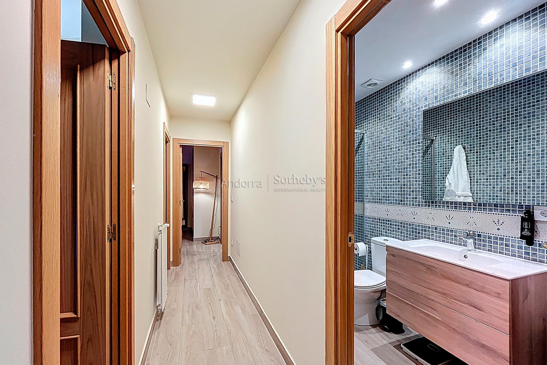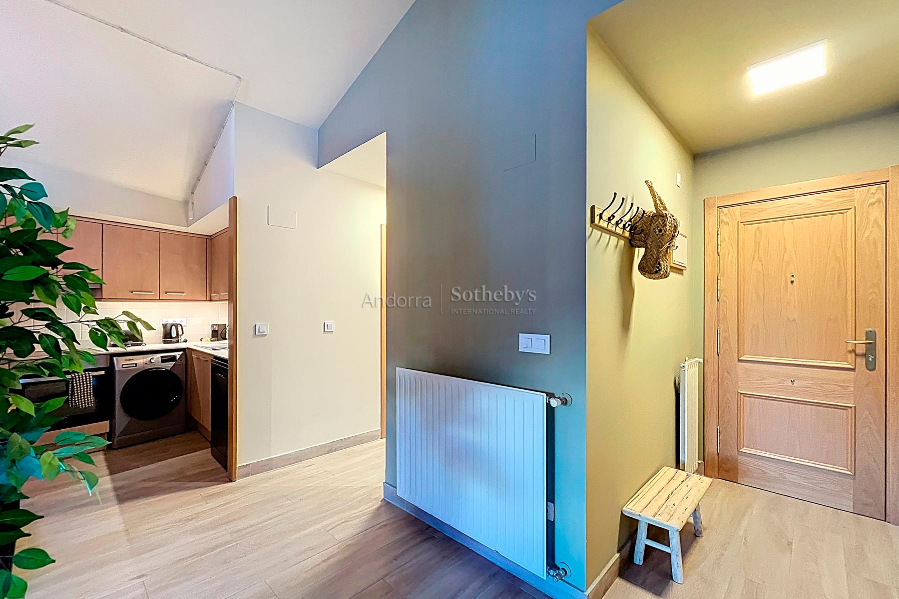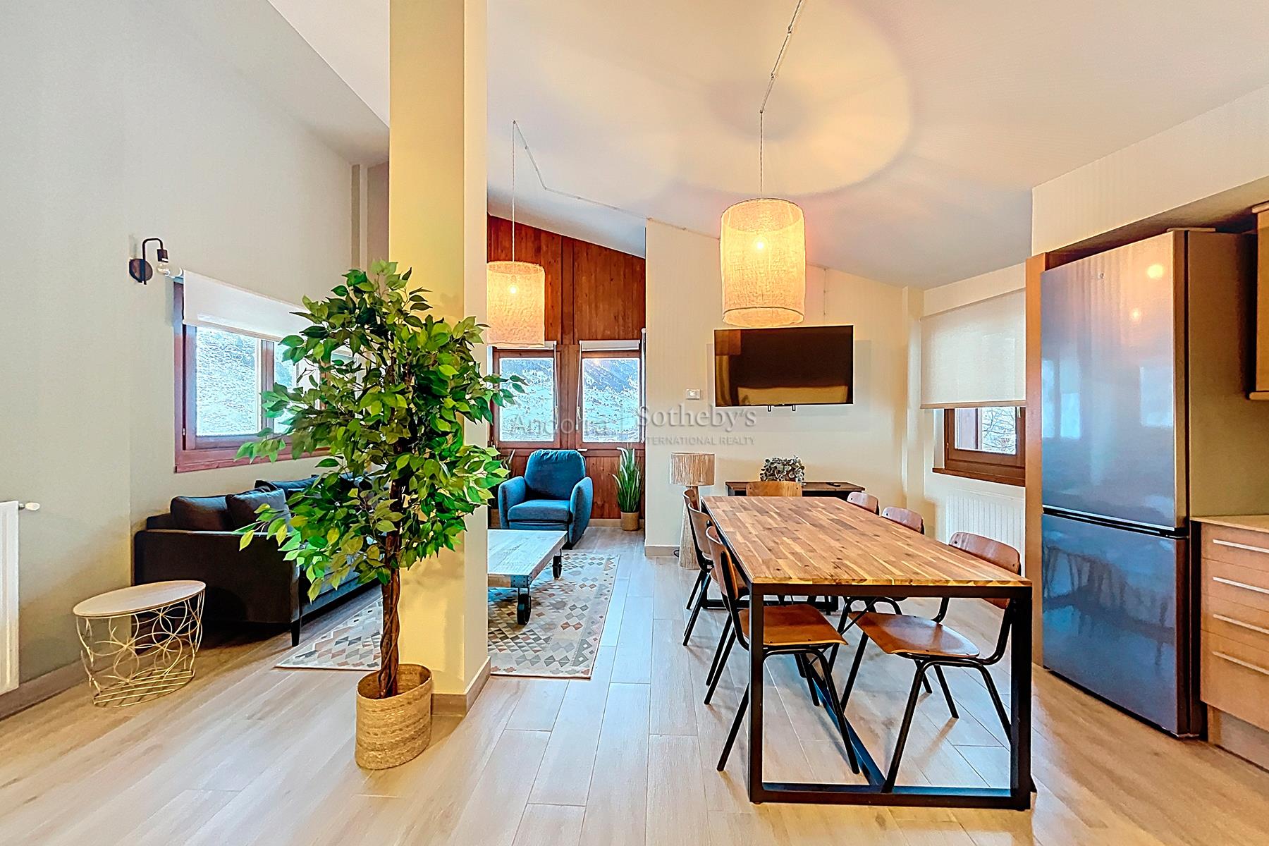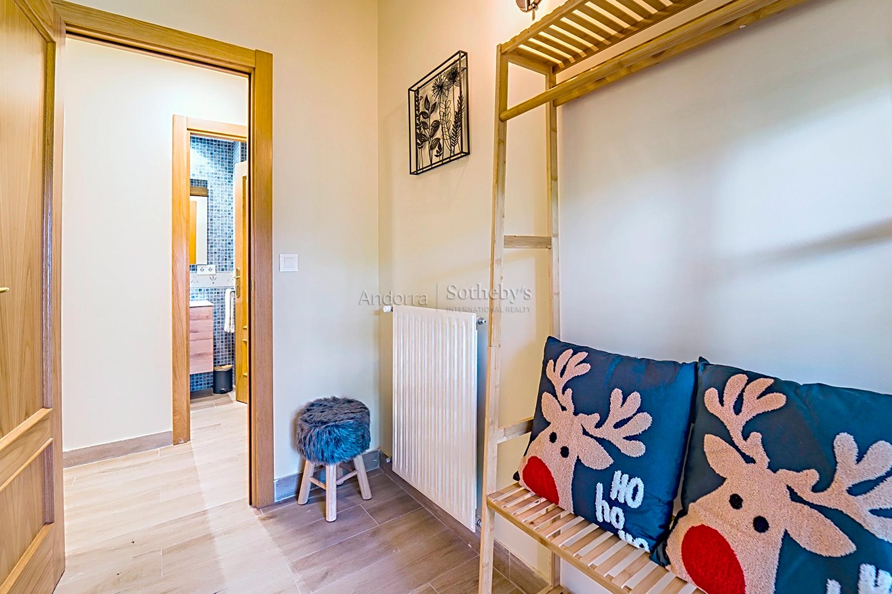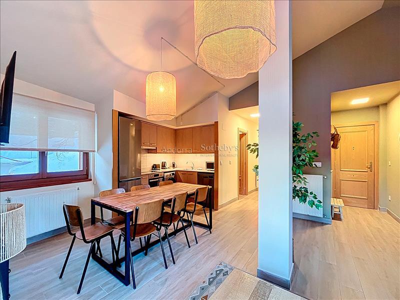 Discover this cozy flat located in Soldeu, with a surface area of 81.81 m² and a comfortable, functional layout. This dwelling combines stunning views and modern comfort to enjoy nature and everyday life. The interior of the apartment is arranged in an open-plan space that houses the kitchen and living-dining area, creating a warm and practical atmosphere, ideal for sharing and relaxing. It features three bedrooms, one en suite, one double, and one single, perfect for the whole family, along with two full bathrooms—one with a shower and the other with a bathtub—offering convenience and functionality. Rustic details, such as wooden walls in some areas, and the parquet flooring, add warmth and traditional charm to the home. Additionally, it has a double storage room, ideal for storing sports equipment, and an included parking space, ensuring everyday comfort. Situated just a few minutes from the beautiful hiking and biking trails of Vall d’Incles and the Grandvalira ski slopes, this apartment is perfect for nature and sports enthusiasts. Don’t miss this opportunity to live in a tranquil setting, surrounded by natural beauty, with all amenities within reach.Features