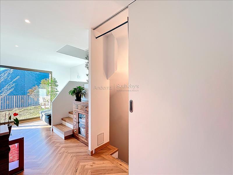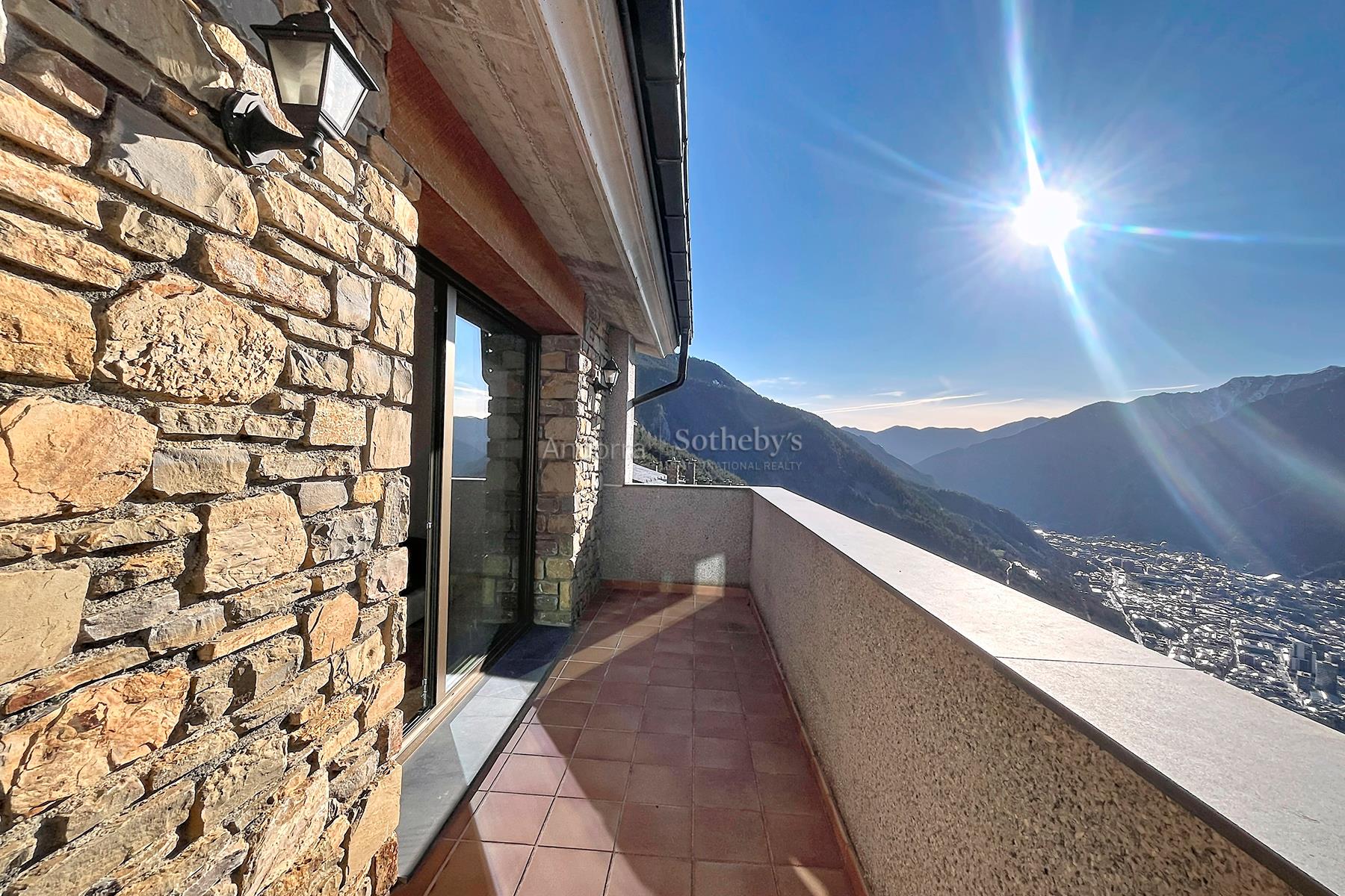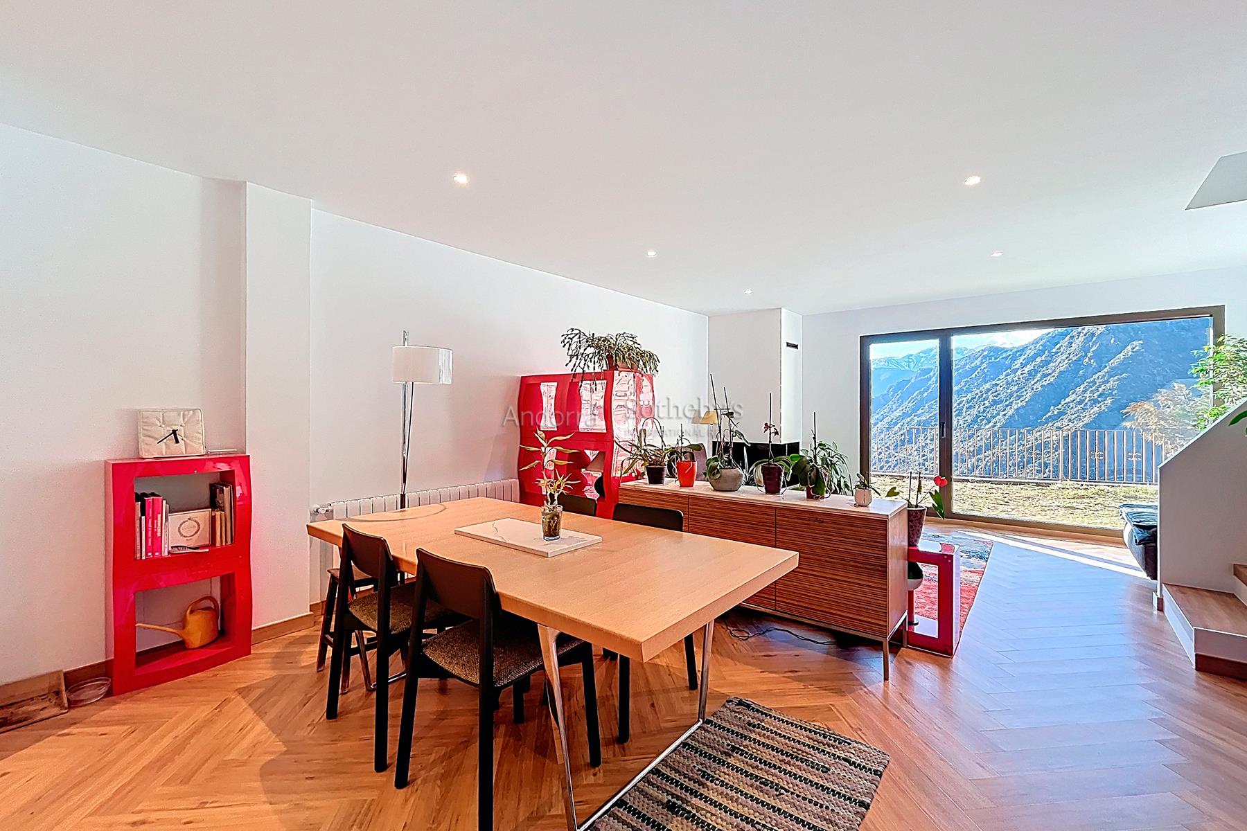 Discover this charming terraced house in Engolasters, ideal for those seeking to combine comfort and functionality. With 219.58 m² spread across three floors, plus the garage level, it offers spacious and well-connected spaces, perfect for the whole family. Recently renovated, the house is in impeccable and updated condition, and all levels of the living space are connected by an elevator, in addition to stairs. The ground floor features a cozy living-dining room with a wood fireplace and access to a garden that offers stunning views of Escaldes and Andorra. This space, with afternoon sun, is perfect for enjoying pleasant outdoor moments. It also includes a fully equipped kitchen and a guest toilet. On the first floor, you'll find two spacious double bedrooms and one single bedroom, with outdoor views and built-in wardrobes, along with a full bathroom with a bathtub. The attic level includes the master bedroom, a full bathroom, and a practical and spacious walk-in closet. From the bedroom, there's access to a west-facing terrace, ideal for enjoying afternoon sunlight and a pleasant outdoor space. The underground garage has capacity for two cars and includes storage spaces, a technical room, and a laundry area. From the garage, there is direct access to the house. This property has been fully renovated recently, with high-quality materials, including triple-glazed windows that are ideal for reducing noise and cold. The outdoor areas, oriented west, ensure excellent natural lighting throughout the afternoon and evening. The privileged views from the garden and terrace are one of the main highlights of this property. A standout option for those looking for comfort, functionality, and spectacular views in a peaceful and pleasant environment, just 8 minutes by car from the center of Escaldes.Features