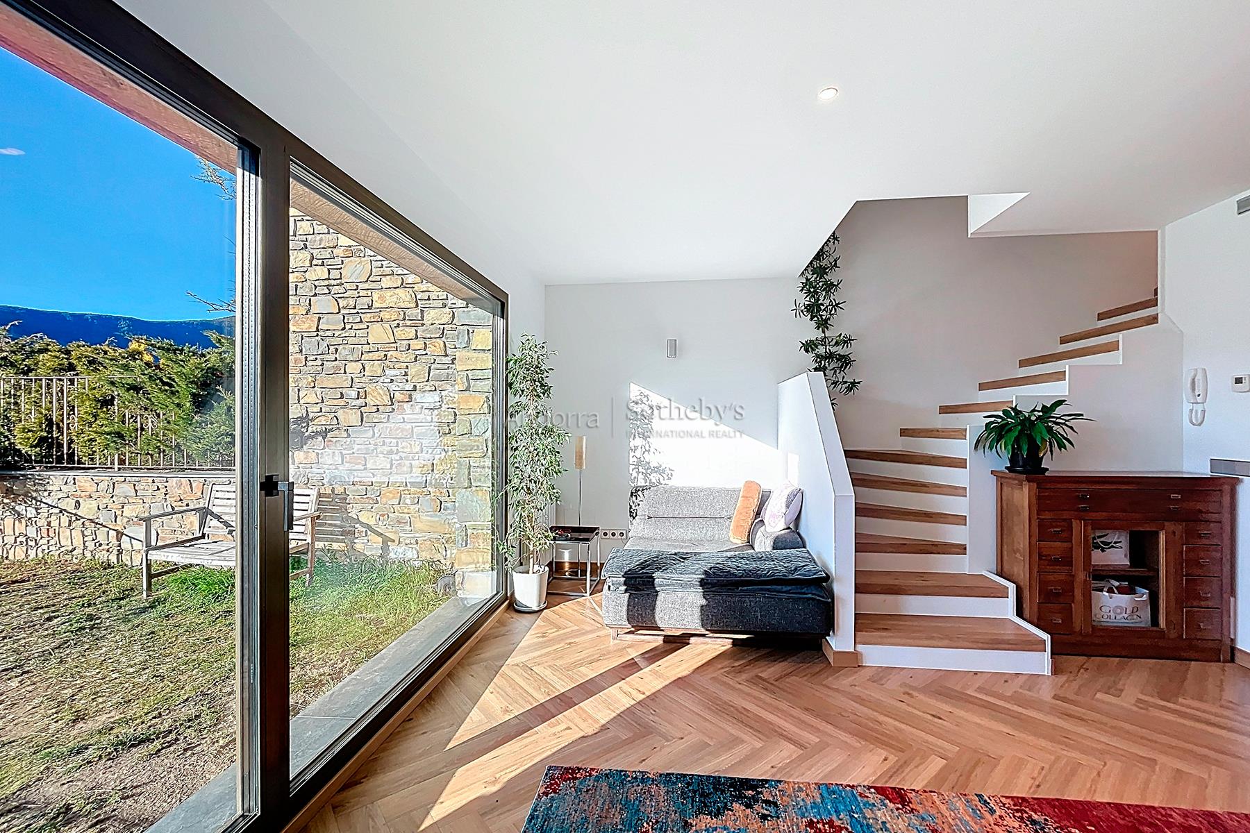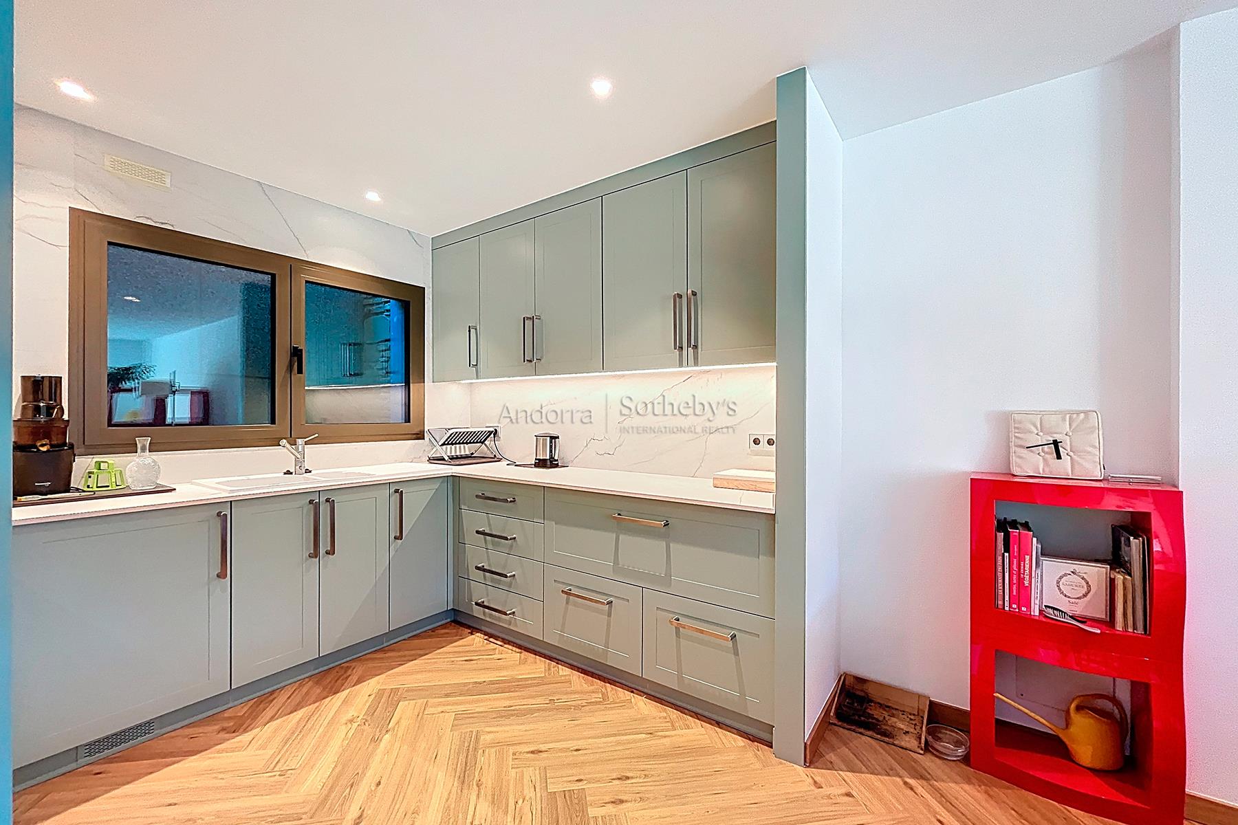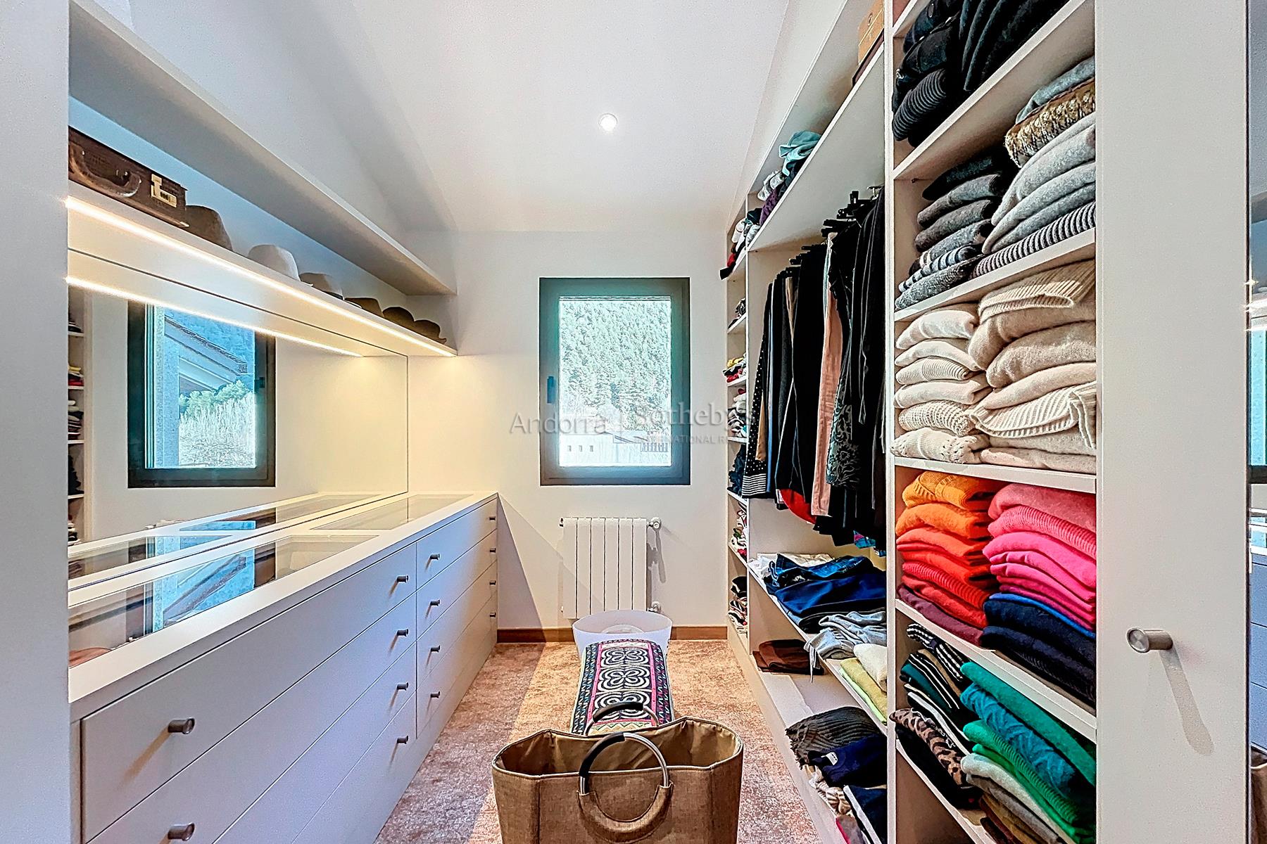 Discover this charming terraced house in Engolasters, ideal for those seeking to combine comfort and functionality. With 219.58 m² spread across three floors, plus the garage level, it offers spacious and well-connected spaces, perfect for the whole family. Recently renovated, the house is in impeccable and updated condition, and all levels of the living space are connected by an elevator, in addition to stairs. The ground floor features a cozy living-dining room with a wood fireplace and access to a garden that offers stunning views of Escaldes and Andorra. This space, with afternoon sun, is perfect for enjoying pleasant outdoor moments. It also includes a fully equipped kitchen and a guest toilet. On the first floor, you'll find two spacious double bedrooms and one single bedroom, with outdoor views and built-in wardrobes, along with a full bathroom with a bathtub. The attic level includes the master bedroom, a full bathroom, and a practical and spacious walk-in closet. From the bedroom, there's access to a west-facing terrace, ideal for enjoying afternoon sunlight and a pleasant outdoor space. The underground garage has capacity for two cars and includes storage spaces, a technical room, and a laundry area. From the garage, there is direct access to the house. This property has been fully renovated recently, with high-quality materials, including triple-glazed windows that are ideal for reducing noise and cold. The outdoor areas, oriented west, ensure excellent natural lighting throughout the afternoon and evening. The privileged views from the garden and terrace are one of the main highlights of this property. A standout option for those looking for comfort, functionality, and spectacular views in a peaceful and pleasant environment, just 8 minutes by car from the center of Escaldes.Features