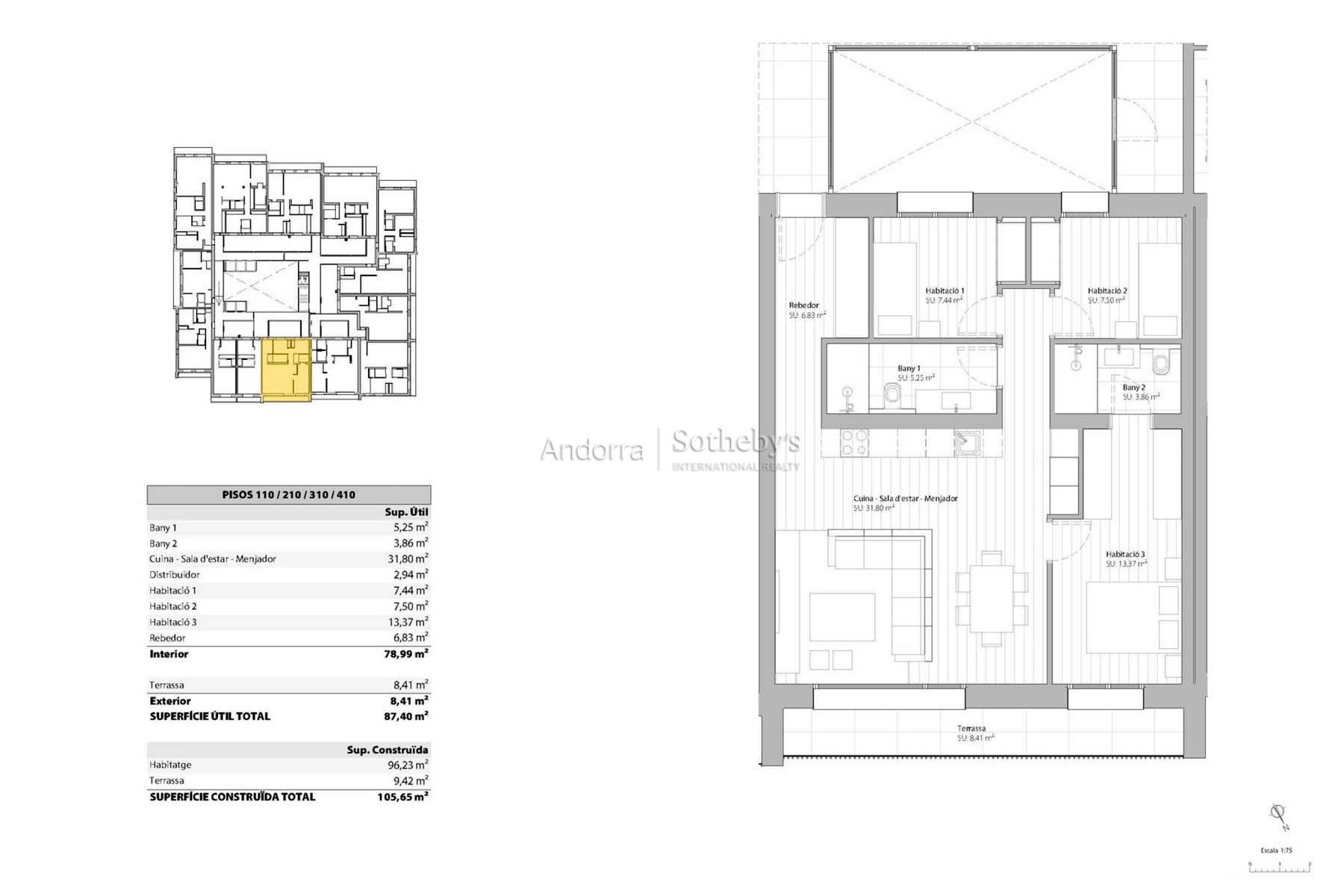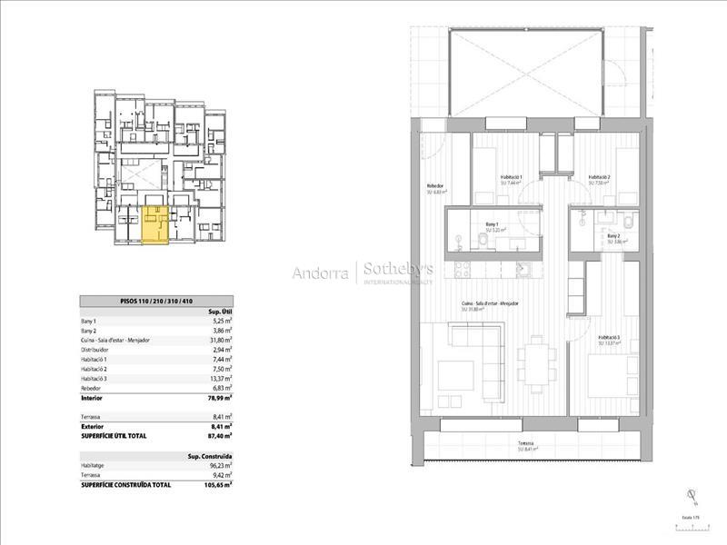 Discover this magnificent new work located in El Tarter. With an area of 105.64m2, this property offers a modern and spacious space to enjoy to the fullest. The kitchen, integrated into the living room, creates a cozy and functional atmosphere. From here you can access a charming terrace of 9.42 m2 with views. With three bedrooms, a stunning suite with walk-in closet, two single bedrooms, and two full bathrooms, this home is perfect for those looking for comfort and style. The building has a private garage for two cars, which provides additional comfort and allows you to have your vehicles protected from the cold and snow. This property is fitted with high quality features including energy efficient LED lighting, underfloor heating and an elegant electric fireplace. In addition, it has home automation that allows you to easily control and manage home systems from your smartphone. Top-quality appliances offer you an exceptional culinary experience, while radiant floors and porcelain stoneware add a touch of warmth, sophistication and durability. The community has a spa and a community relaxation area, where you can enjoy swimming pools and jacuzzis, creating an atmosphere of well-being and relaxation. In addition, a central courtyard with a green area completes this environment, providing a quiet and natural space. Don't miss the opportunity to live in this wonderful property in El Tarter.Features