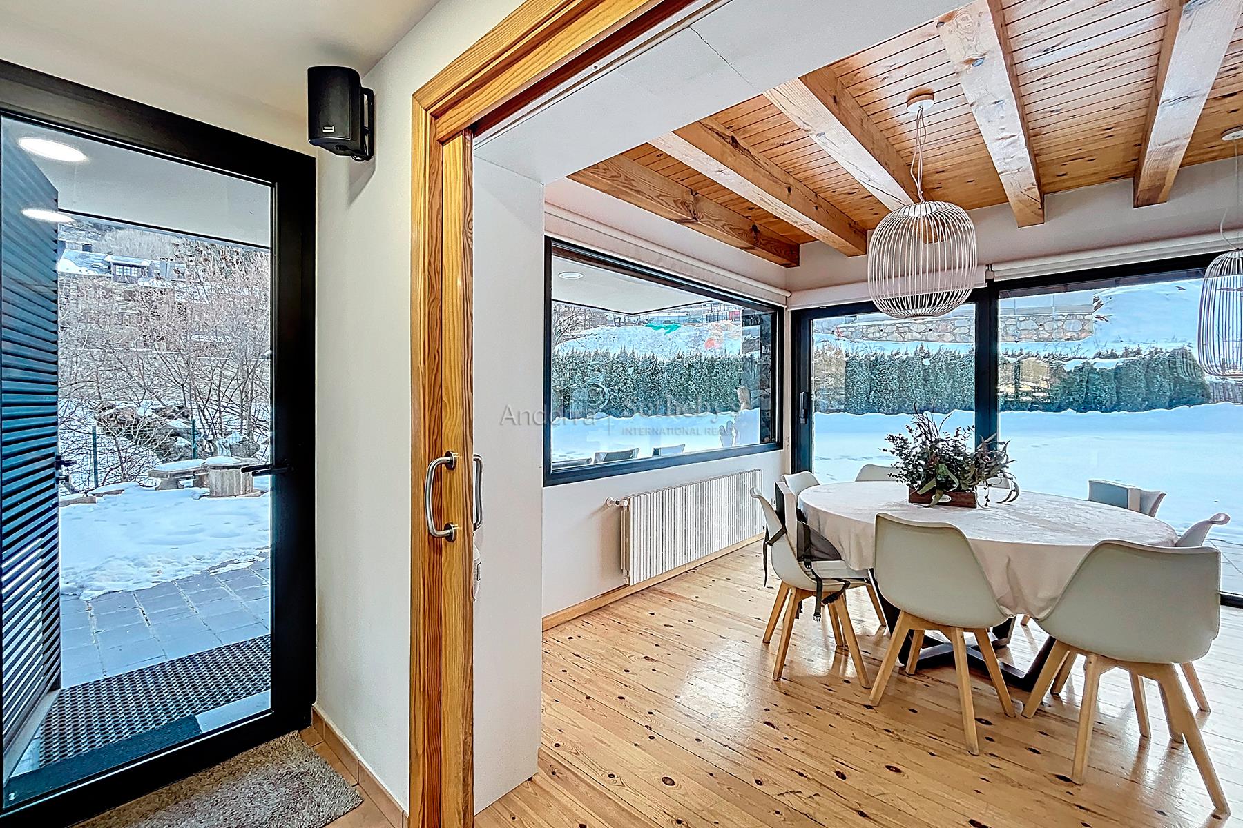 Sumérgete en la calidez y la tranquilidad de esta residencia rústica situada en Ordino. Con 417,66 m2 de espacio construido en una parcela de 701,05 m2, esta casa de 3 plantas ofrece un refugio acogedor en medio de un entorno sereno y natural. Al ingresar a la planta baja, accederás por la escalera a la planta 1 donde una espaciosa sala comedor con chimenea, que se abre a un jardín con césped natural, orientado al sur para disfrutar de la luz del sol y las vistas. La cocina totalmente equipada con despensa se conecta directamente al jardín, que cuenta con una zona de barbacoa y una toma de agua, ideal para reuniones al aire libre. También en esta planta, encontrarás un práctico aseo de cortesía. En la primera planta, las 4 habitaciones añaden una dimensión de confort y privacidad. Dos suites cuentan con baños privados y vestidores, mientras que las otras 2 habitaciones dobles comparten un baño completo con bañera. En esta planta también hay una práctica habitación para lavandería. Las ventanas panorámicas ofrecen vistas relajantes del entorno natural. El garaje a nivel de calle ofrece espacio para 4 vehículos, almacenamiento para bicicletas o motos, bodega, trastero y sala técnica para la calefacción. Con la posibilidad de instalar un ascensor, recibidor con armario closet y un conveniente sistema de drive para descargas desde el exterior, la residencia se distingue por su practicidad y comodidad. Disfruta de la vida en esta residencia rústica en Ordino, donde la serenidad del entorno y el cálido ambiente del hogar se fusionan para crear un espacio acogedor y familiar.Características