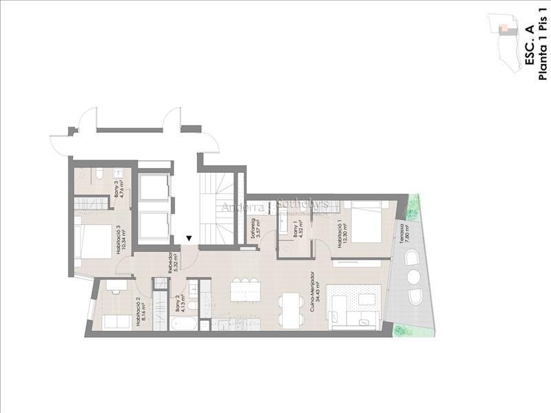 Ce magnifique appartement nouvellement construit, en construction, est situé à côté de la principale avenue commerciale de La Massana, dans un quartier résidentiel familial près de la piscine commune et des courts de tennis, très calme et parfaitement desservi. Il dispose de tous les services nécessaires et se trouve à seulement 400 mètres du téléphérique qui permet d'accéder aux pistes de ski du domaine de Pal-Arinsal. L'appartement dispose de 110,11m² répartis en un grand séjour avec accès à une terrasse de 7,80m², une grande cuisine, intégrée à la salle à manger, équipée d'électroménager haut de gamme, avec une buanderie séparée. Dans la zone de repos, il y a 3 chambres, dont deux en suite avec salle de bain complète, l'autre simple et toutes les trois avec placards intégrés. Il y a aussi une troisième salle de bain complète. La propriété dispose d'une place de parking dans le même bâtiment. Orienté à l'est, l'appartement bénéficie du soleil dès les premières heures de la journée jusqu'au milieu de l'après-midi et offre une vue sur le Camí Ral, avec la rivière et la vallée de la Massana. Cet appartement exclusif, parfaitement situé, est un excellent investissement pour une famille à la recherche d'une résidence de prestige au centre d'une ville au dynamisme de La Massana et souhaitant profiter de son large éventail d'activités avec tout l'espace et les commodités nécessaires.Caractéristiques