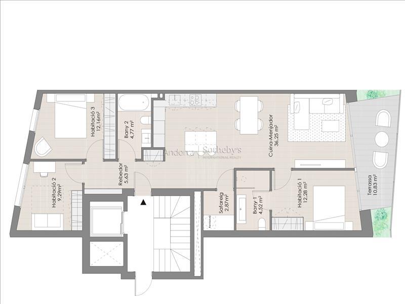 Ce magnifique appartement nouvellement construit, en construction, est situé à côté de la principale avenue commerciale de La Massana, dans un quartier résidentiel familial près de la piscine commune et des courts de tennis, très calme et parfaitement desservi. Il dispose de tous les services nécessaires et se trouve à seulement 400 mètres du téléphérique qui permet d'accéder aux pistes de ski du domaine de Pal-Arinsal. L'appartement dispose de 112m² répartis en un grand séjour avec accès à une terrasse de 10m², une grande cuisine, intégrée à la salle à manger, équipée d'électroménager haut de gamme, avec une buanderie séparée. Dans la zone de repos, il y a 3 chambres, une en suite avec salle de bain complète, une double et l'autre simple, et toutes les trois avec placards intégrés. Il y a aussi une deuxième salle de bain complète. La propriété dispose d'une place de parking dans le même bâtiment. Orienté à l'est, l'appartement bénéficie du soleil dès les premières heures de la journée jusqu'au milieu de l'après-midi et offre une vue sur le Camí Ral, avec la rivière et la vallée de la Massana. Cet appartement exclusif, parfaitement situé, est un excellent investissement pour une famille à la recherche d'une résidence de prestige au centre d'une ville au dynamisme de La Massana et souhaitant profiter de son large éventail d'activités avec tout l'espace et les commodités nécessaires.Caractéristiques