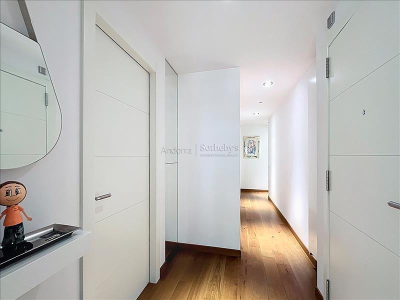 Appartement exclusif situé dans une zone privilégiée de Vila, dans la paroisse d'Encamp, près des écoles et des installations sportives, entouré par la nature et très bien desservi. Cette propriété a une superficie totale d'environ 220 m², répartis sur trois chambres avec salle de bain privative, trois salles de bain, un salon-salle à manger, une cuisine fermée et une buanderie. Elle dispose d'une terrasse d'environ 12,96 m² avec un accès direct depuis le salon, d'où l'on peut apprécier de belles vues et du soleil. Il est important de souligner la qualité des finitions et des matériaux utilisés de haute gamme pour garantir un confort maximal à la maison. Parmi les caractéristiques clés de ce bien, on trouve : un système de domotique, le contrôle des volets, de l'éclairage et de la climatisation du logement, un système de contrôle central avec écran tactile, chauffage centralisé avec une chaudière au gazole à faible consommation de la marque Wilessman avec un compteur de kcal/h. Le bois des portes et des placards encastrés provient de la marque Carré, laqué en blanc et muni de poignées chromées. Les sols sont en parquet Berry Wood dans toutes les pièces, à l'exception des salles de bain et de la cuisine, où le revêtement est de Porcelanosa. La cuisine est équipée de meubles de design de la marque Siematic et d'appareils électroménagers des marques Gaggenau et Siemens. Pour un maximum de confort, elle dispose de 2 places de parking et 2 caves. Un appartement exclusif qui se distingue par sa vie privée et le confort de la maison.Caractéristiques
