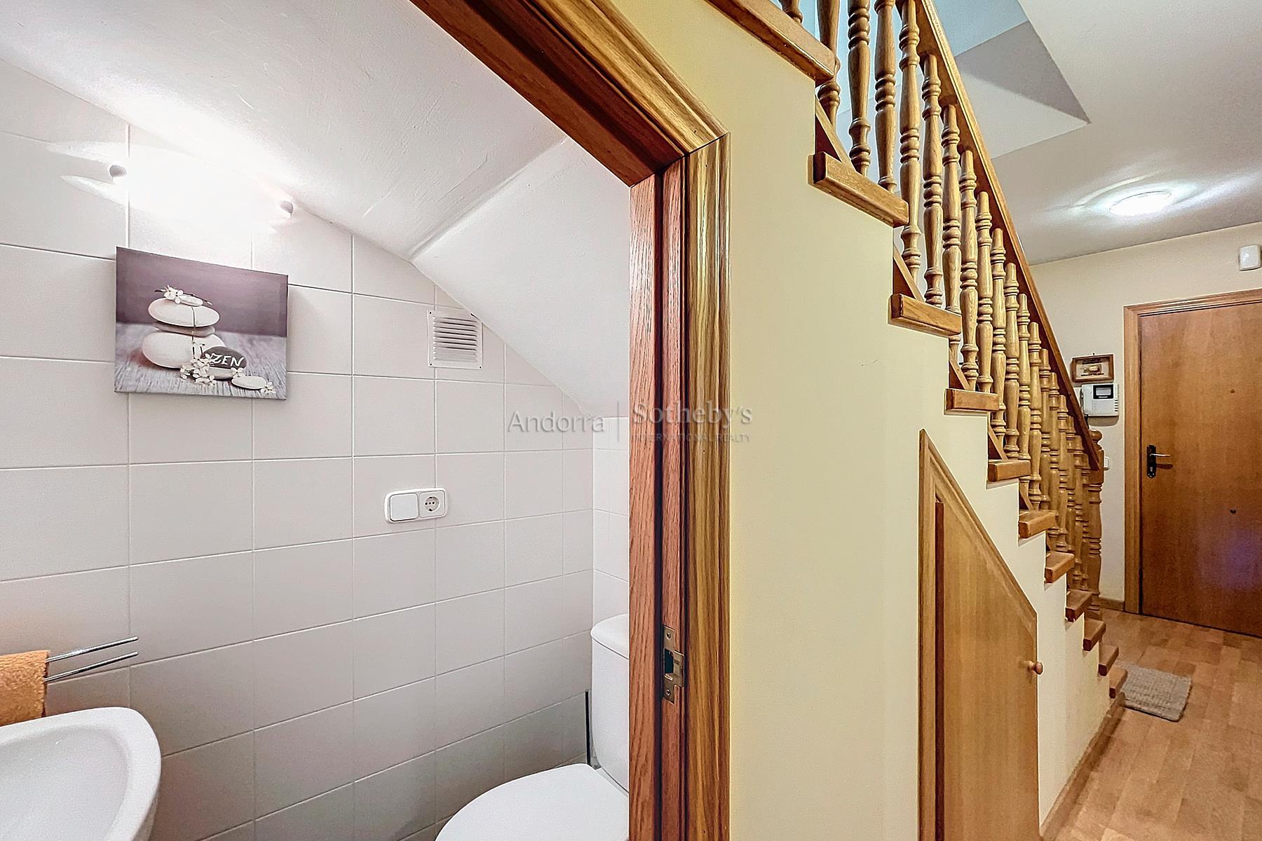 Nous vous présentons un charmant duplex de 105 m² situé à Ordino, idéal pour profiter d'un mode de vie confortable dans un cadre paisible. À l'étage supérieur, vous trouverez une chaleureuse salle à manger équipée d'une cheminée, une sortie sur un balcon avec vue et une excellente exposition au soleil tout au long de l'après-midi. Les plafonds en bois dans le salon, sous les combles, apportent une touche rustique et accueillante à l'espace. La cuisine, spacieuse, pratique et fonctionnelle, comprend un garde-manger et donne accès à une terrasse parfaite pour se détendre en plein air. Au niveau inférieur, la zone nuit se compose de trois chambres : deux doubles et une individuelle, les deux chambres doubles étant dotées de placards intégrés. Il y a également une salle de bains de 4 pièces, entièrement équipée avec baignoire, et un toilettes de courtoisie. L'un des aspects les plus remarquables de ce duplex est son espace de rangement généreux, avec plusieurs placards, dont deux armoires walk-in idéales pour organiser vêtements et accessoires. De plus, le bien dispose d'un grand hall d'entrée qui vous accueille dans la maison. Ne manquez pas l'opportunité de vivre dans ce magnifique duplex, qui comprend également une place de parking dans le même immeuble. Contactez-nous pour plus d'informations ou pour organiser une visite ! Cette location n'est pas saisonnière !Caractéristiques