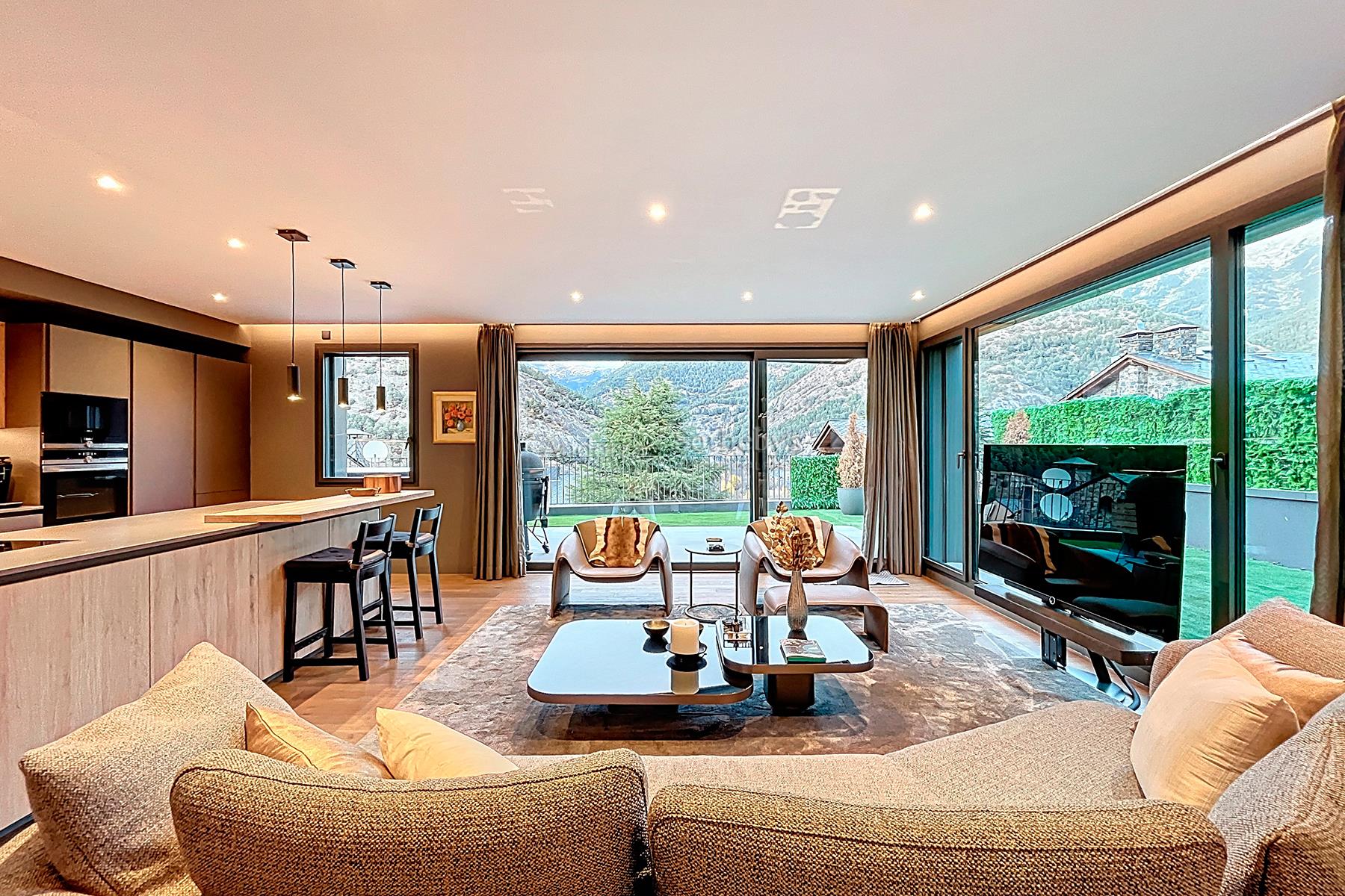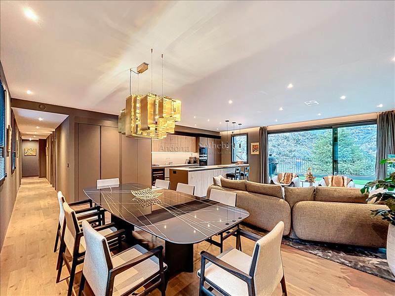 Située à seulement cinq minutes à pied du centre d’Ordino et proche des écoles, cette élégante et spacieuse propriété de 328 m² offre un mode de vie exclusif dans un cadre de rêve. Elle se compose de 162,92 m² d’espace intérieur au design moderne et fonctionnel, ainsi que de 165,83 m² d’espace extérieur incluant une terrasse de 24,35 m² et un jardin de 134,01 m². La zone jour, large et lumineuse, combine salon, salle à manger et cuisine en un seul espace avec un accès direct à l’extérieur, favorisant un mode de vie ouvert et connecté à la nature. Elle dispose de trois chambres, dont une suite avec dressing, ainsi que de deux salles de bains complètes au design contemporain et d’un WC de courtoisie avec coin buanderie intégré. Le garage de 49,03 m² peut accueillir trois ou quatre voitures et offre un espace de stockage. Des matériaux de première qualité, une construction soignée et des vues spectaculaires sur les montagnes de la Vallée d’Ordino confèrent à cette propriété un caractère unique et exclusif. Le jardin, équipé d’un jacuzzi relaxant, est l’endroit idéal pour profiter de moments de tranquillité, de détente et de convivialité dans un environnement privé d’une grande beauté.Caractéristiques